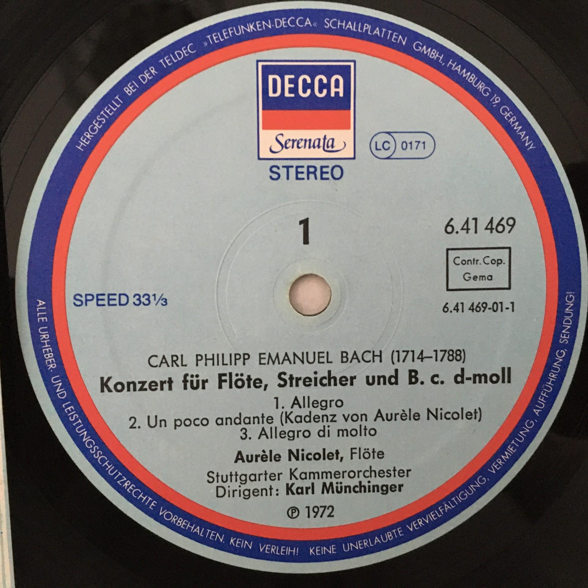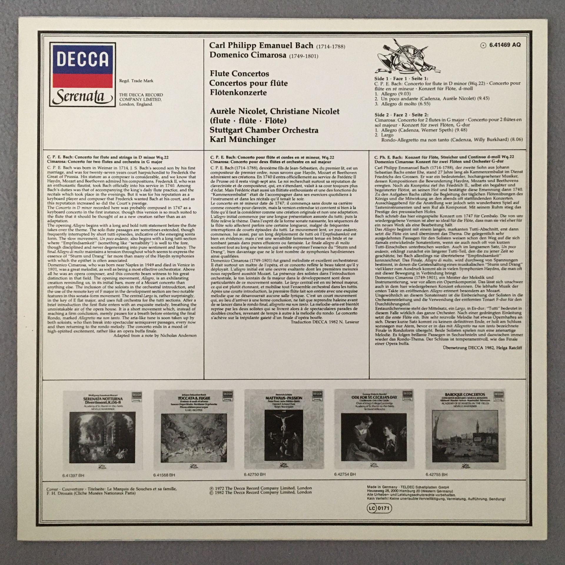 M126 C.P.E. Bach Cimarosa Flute Concertos Munchinger DECCA 6.41469 AQ Stereo