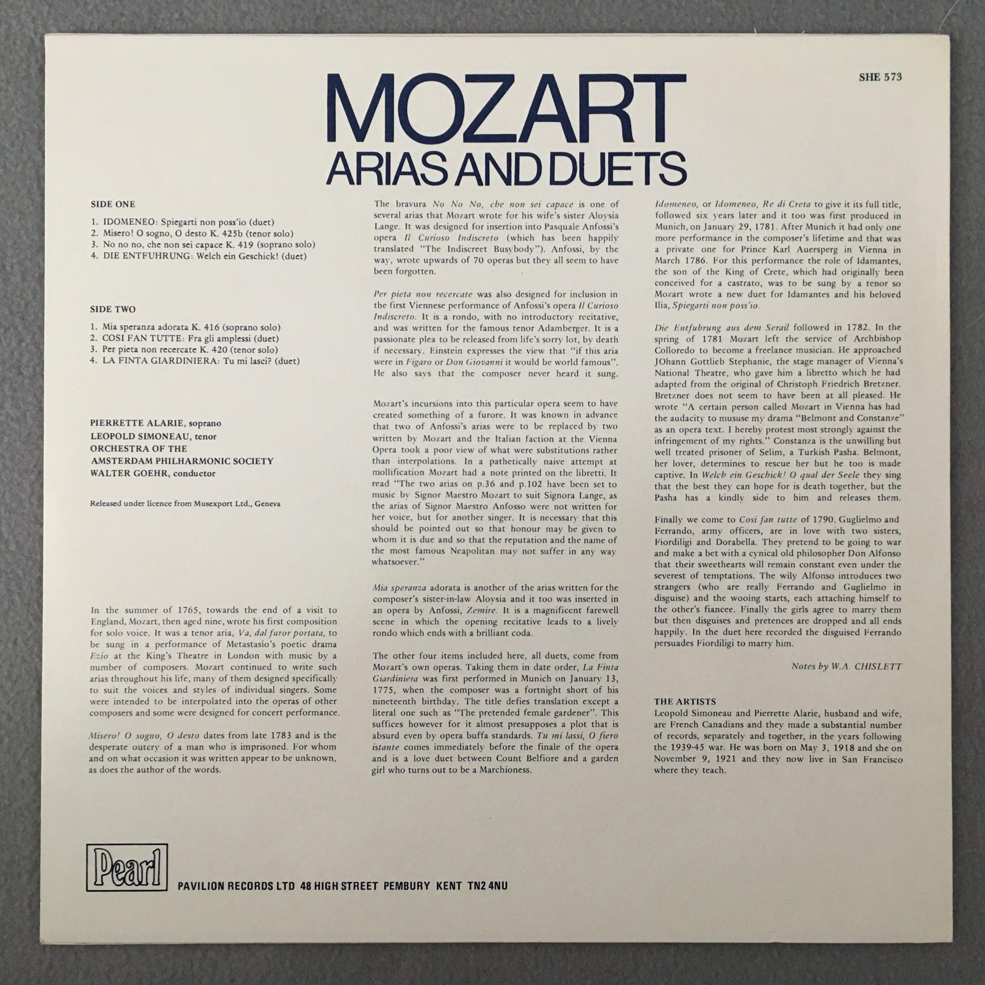 M127 Mozart Arias & Duets Simoneau Alarie Pearl SHE 573 Stereo