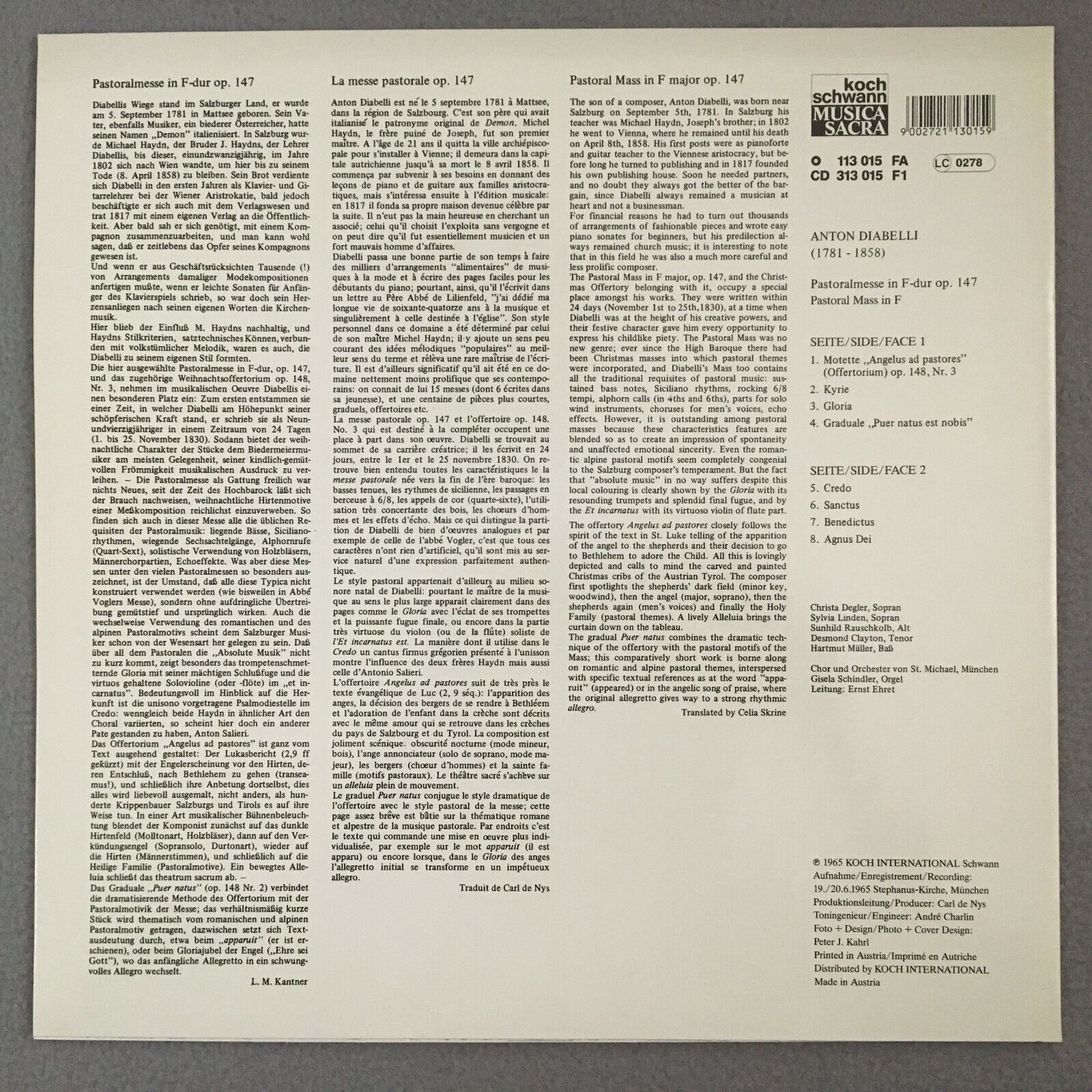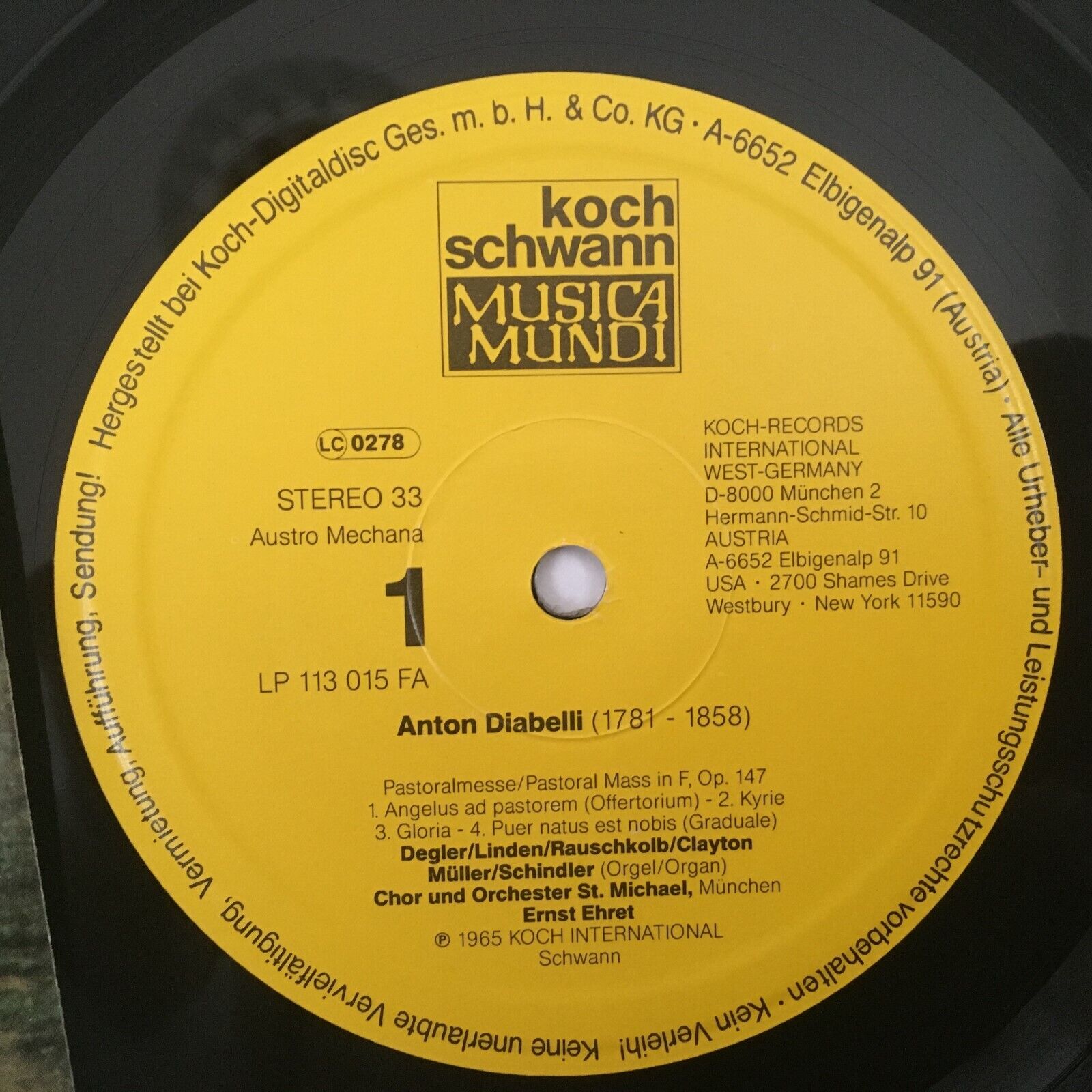 Y324 Diabelli Pastoral Mass Schindler Organ Schwann 113 015 FA Stereo