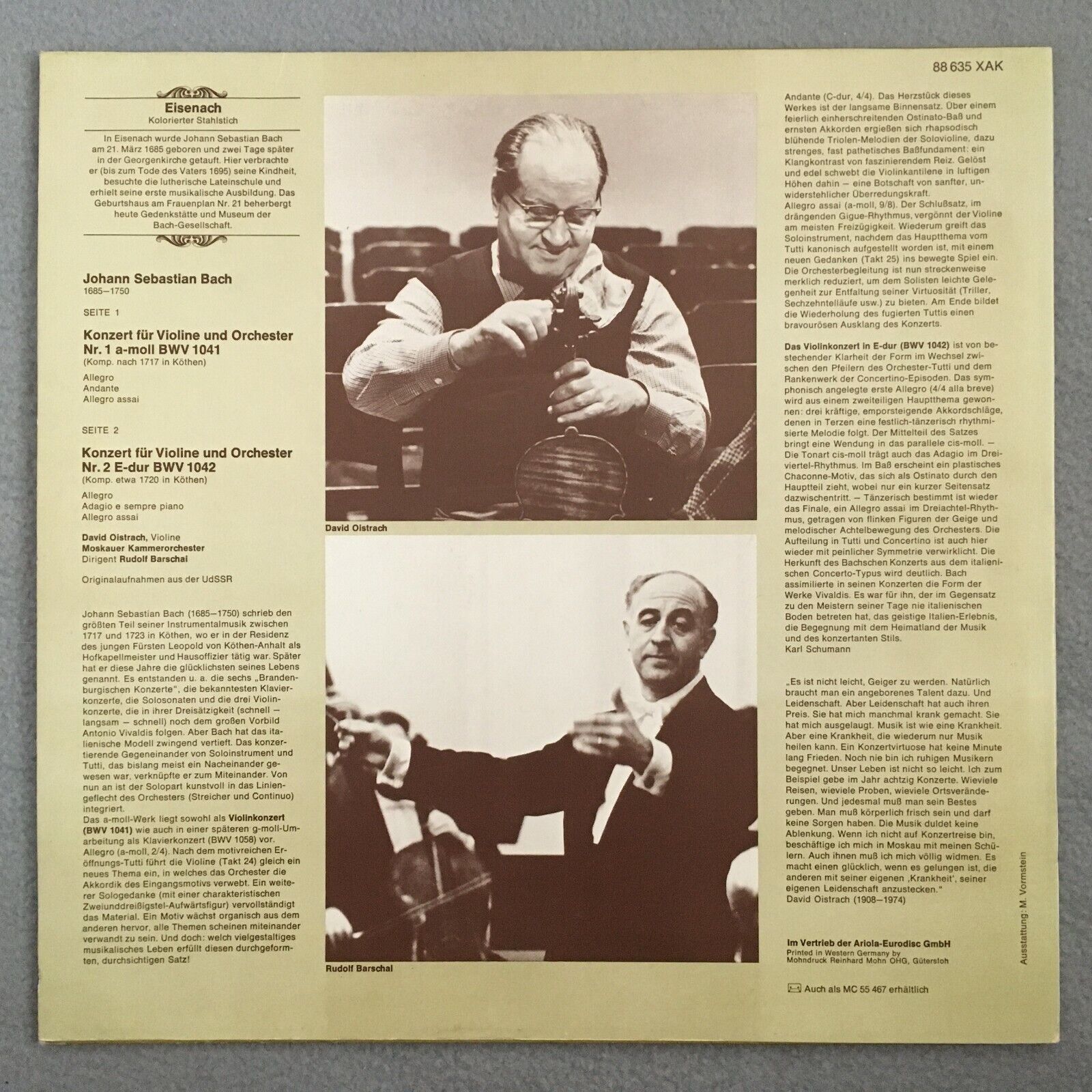 Y488 Bach Violin Concertos No.1 & 2 Oistrakh Barschai Melodiya 88 635 XAK Stereo