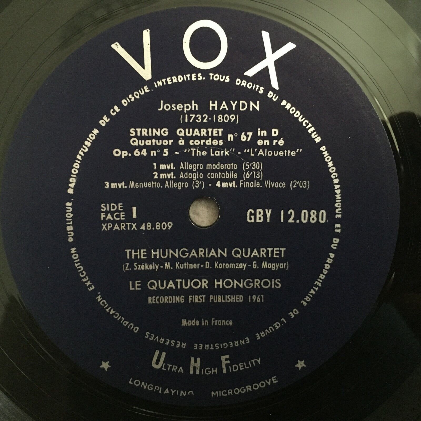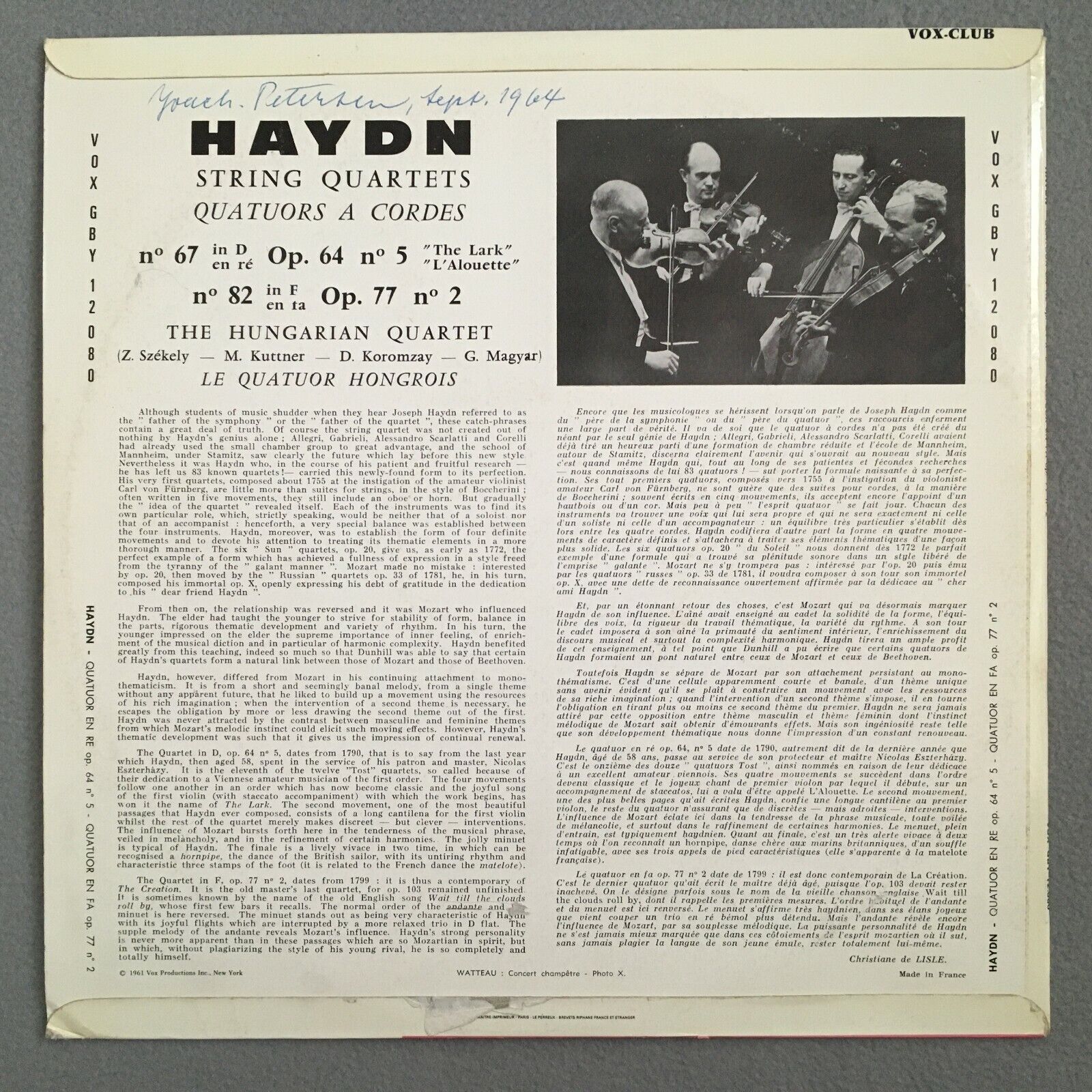 Y599 Haydn Quartets No.67 & No.82 Hungarian String Quartet VOX GBY 12.080