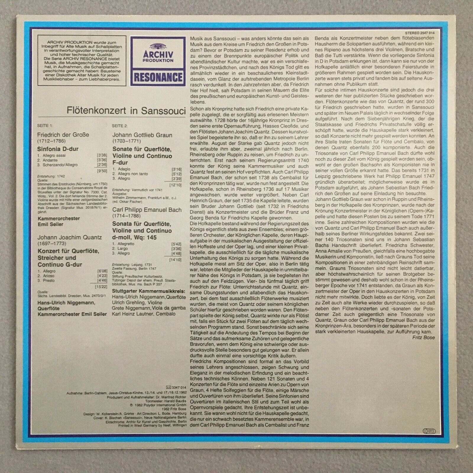 Y603 Flute Concertos in Sanssouci Niggemann Seiler Archiv DGG 2547 014 Stereo