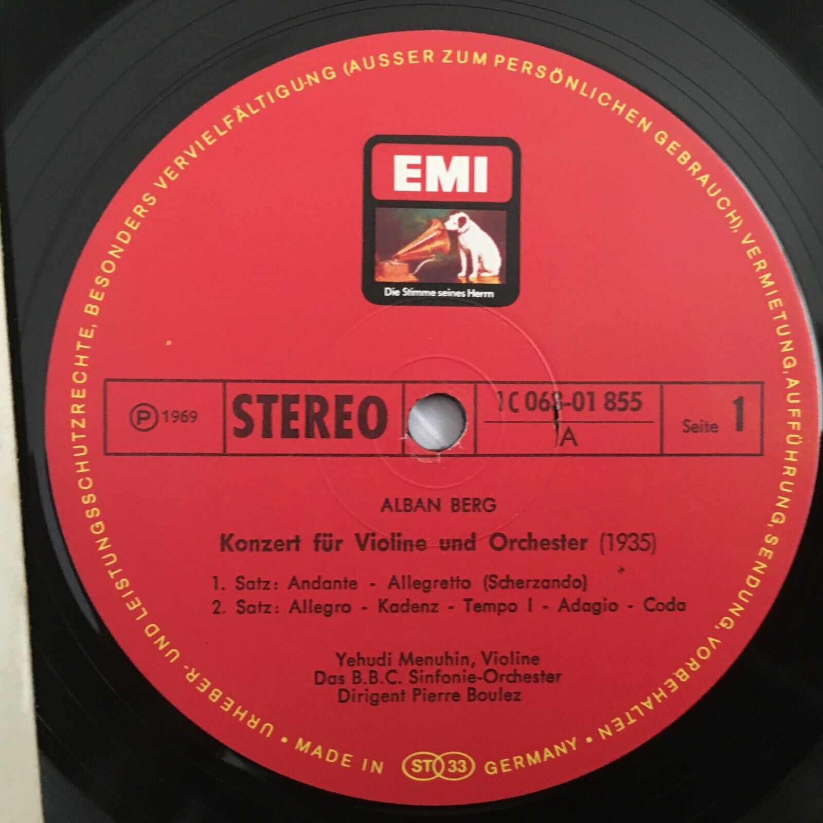 Y638 Berg Violin Concerto Bartok Menuhin Boulez EMI 1 C 063-01 855 Stereo