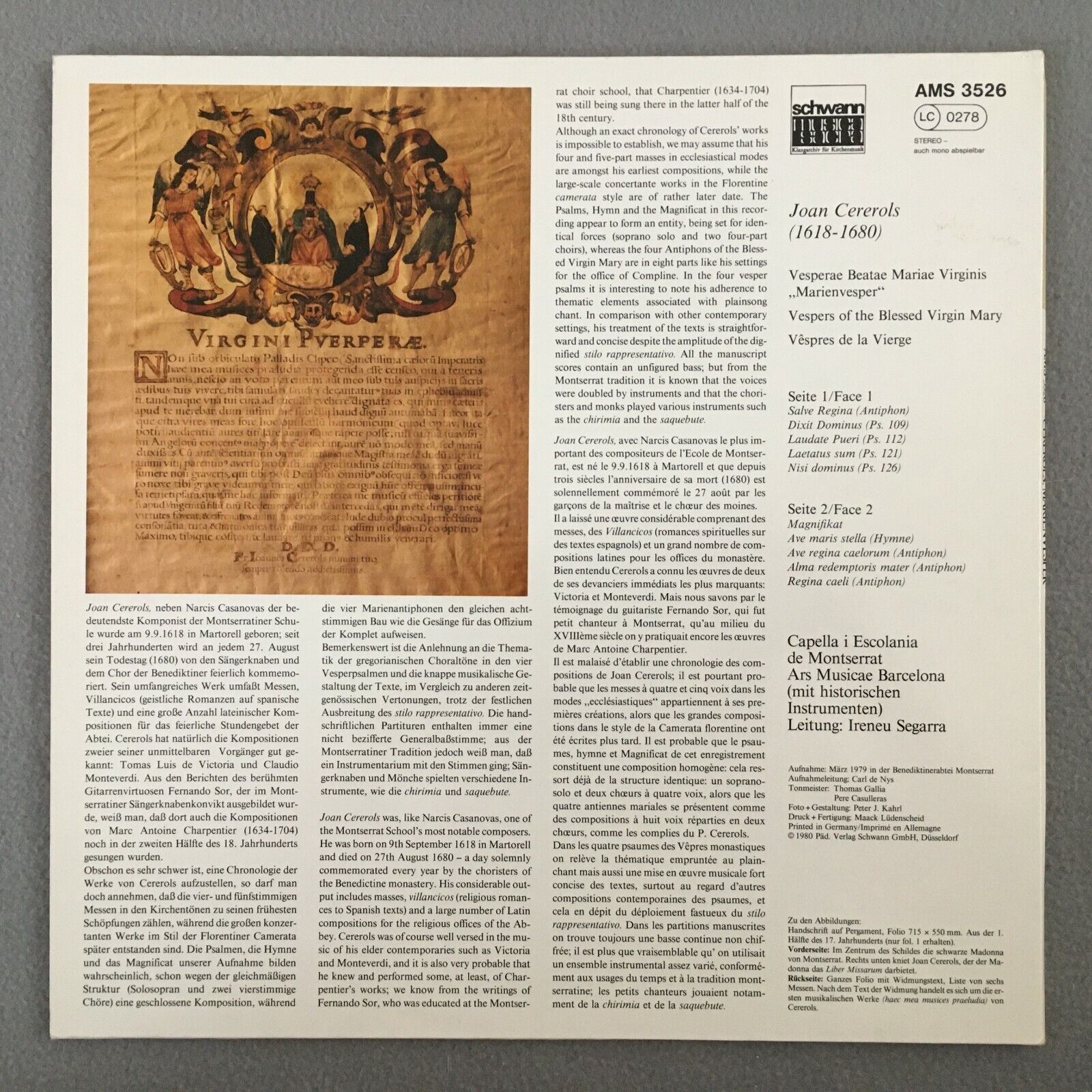 Y640 Cererols Marien Vesper Segarra Schwann AMS 3526 Stereo