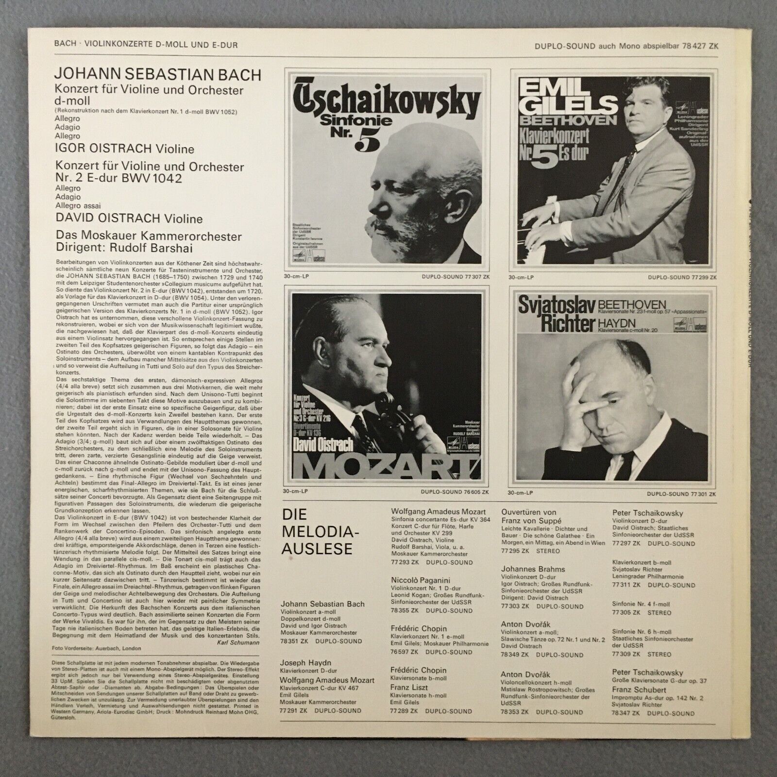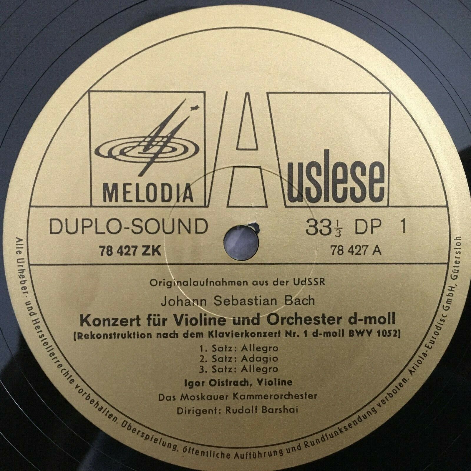 Y658 Bach Violin Concertos I. & D. Oistrakh Barshai Melodiya 78 427 ZK Duplo