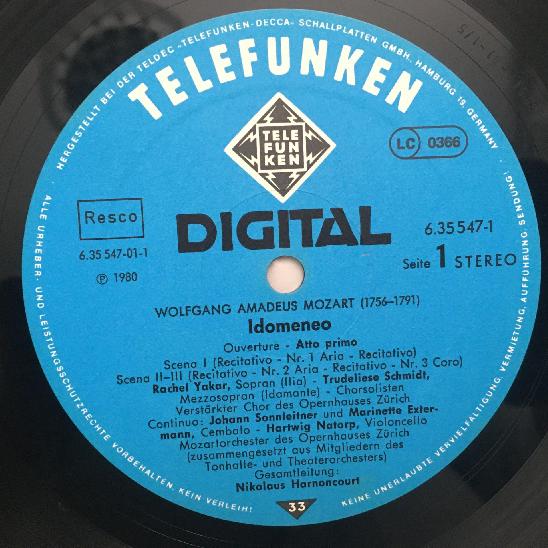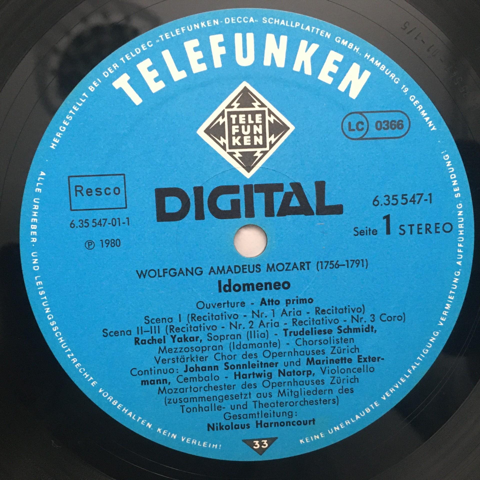D179 Mozart Idomeneo Hollweg Harnoncourt 4LP Telefunken 6.35547 GX Digital St