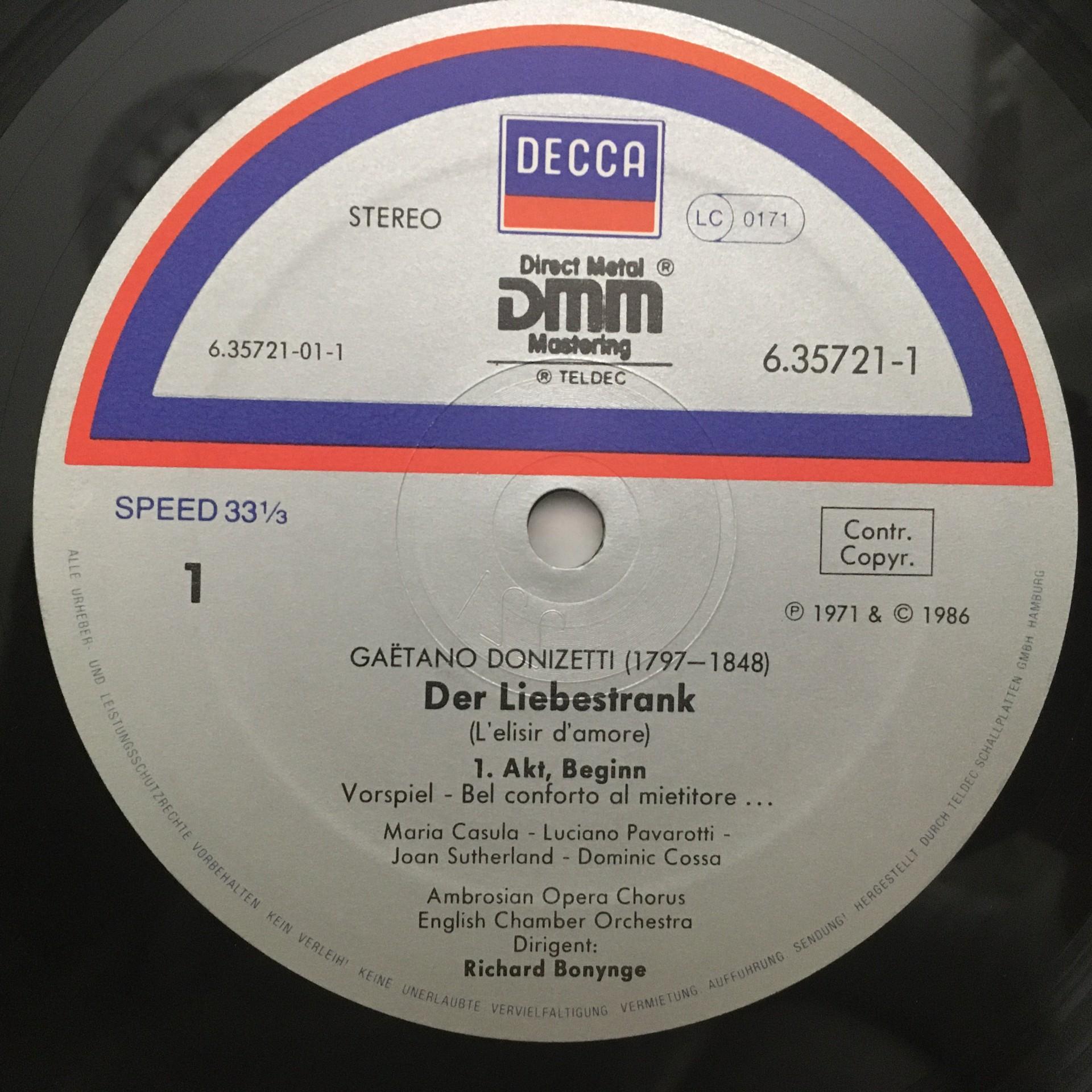 D183 Donizetti Liebestrank Pavarotti Bonynge 2+1LP DECCA 6.35721 Digital + Bonus