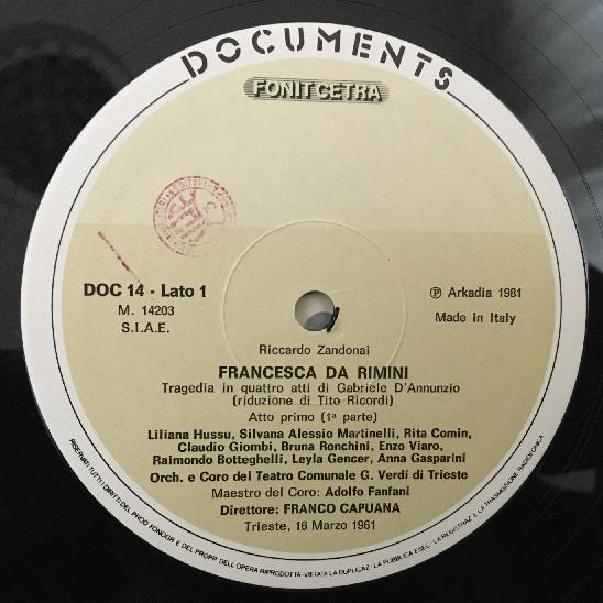 D197 Zandonai Francesca da Rimini Gencer Capuana 3LP Fonit Cetra DOC 14
