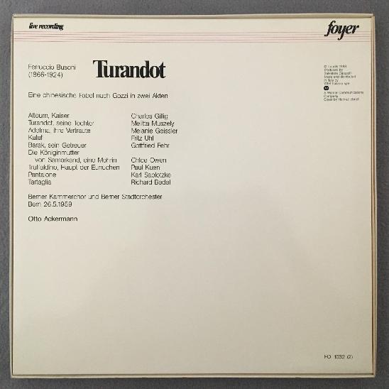 D199 Busoni Turandot Muszely Uhl Ackermann 2LP Foyer FO 1032