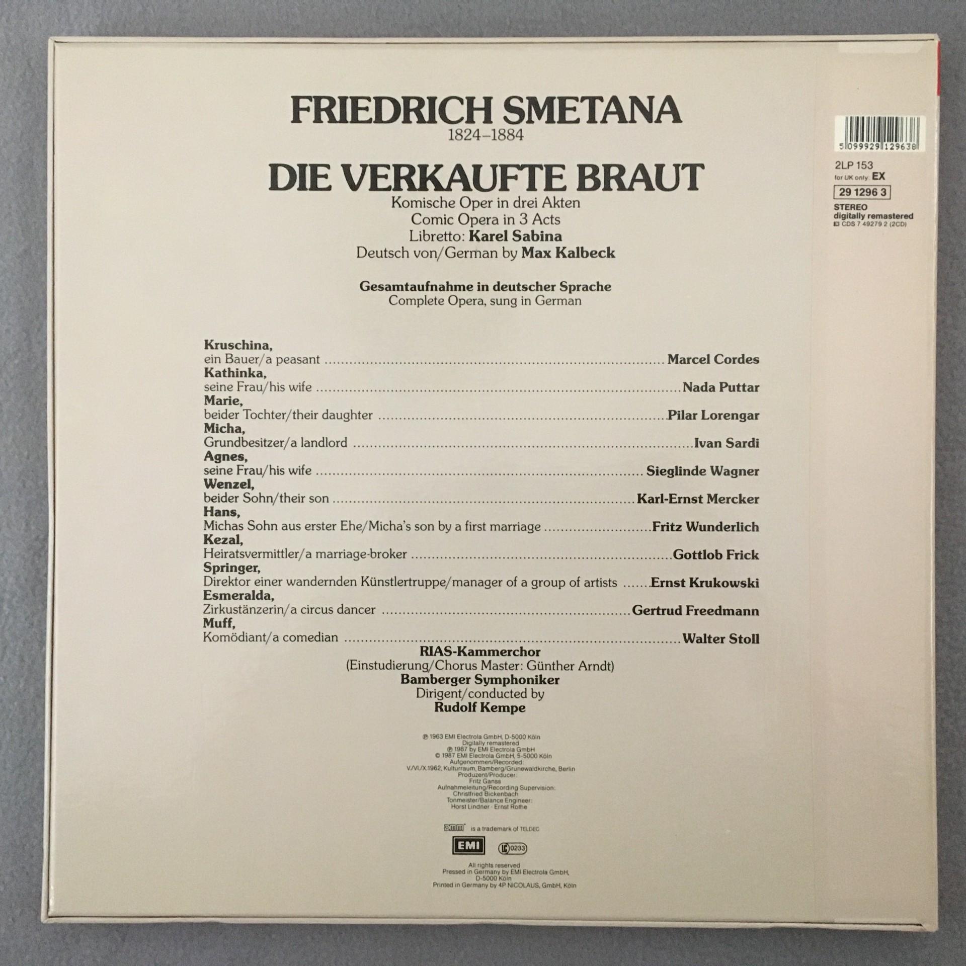 D204 Smetana Die verkaufte Braut Lorengar Kempe 3LP EMI 29 1296 3 Digital Stereo