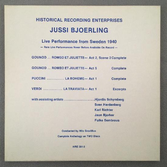 D207 Bjoerling Live Performence from Sweden 1940 Gounod Verdi 2LP HRE 281-2