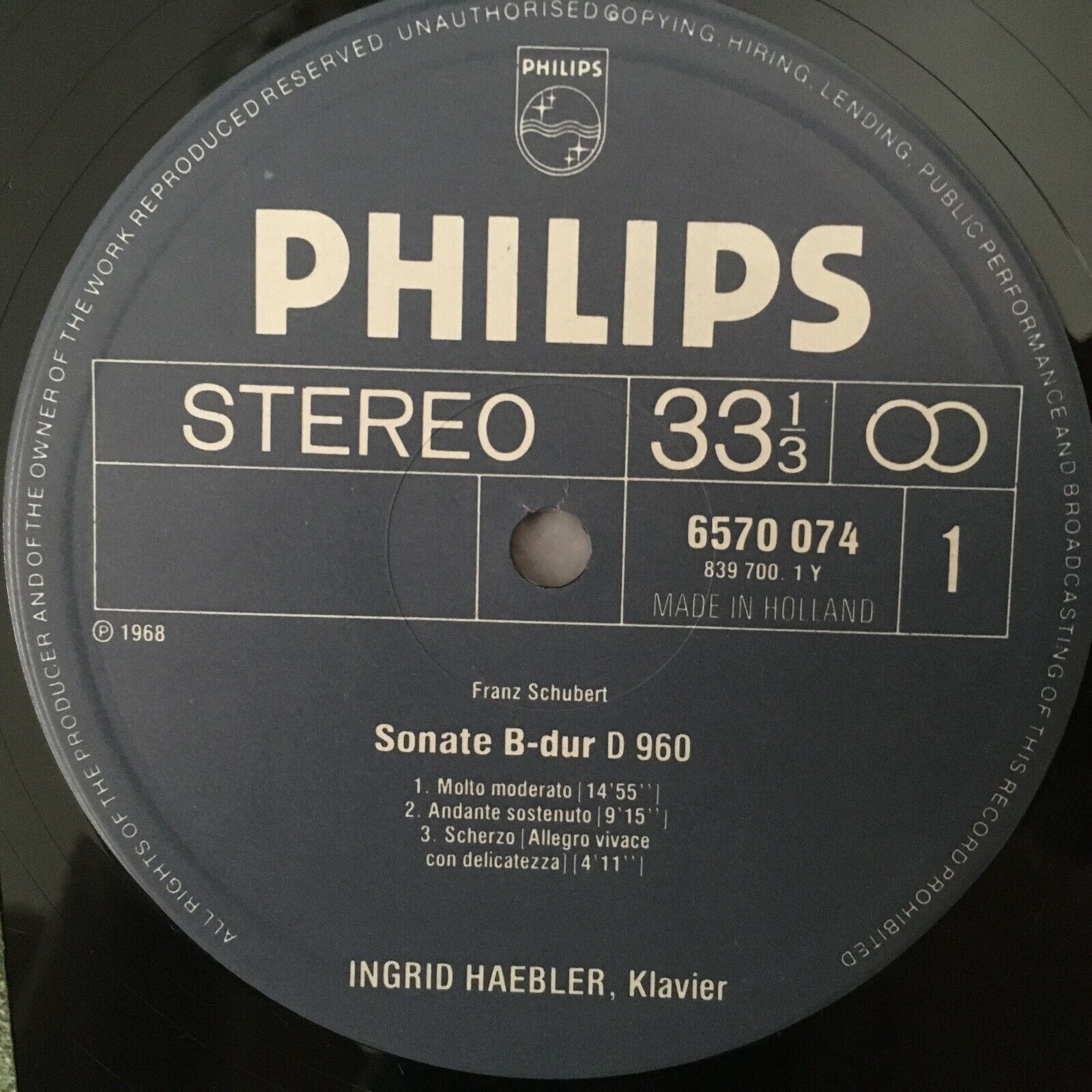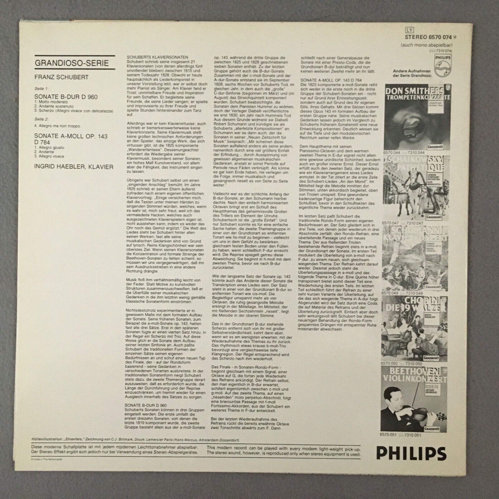 Y787 Schubert Piano Sonatas Haebler Philips 6570 074 Stereo