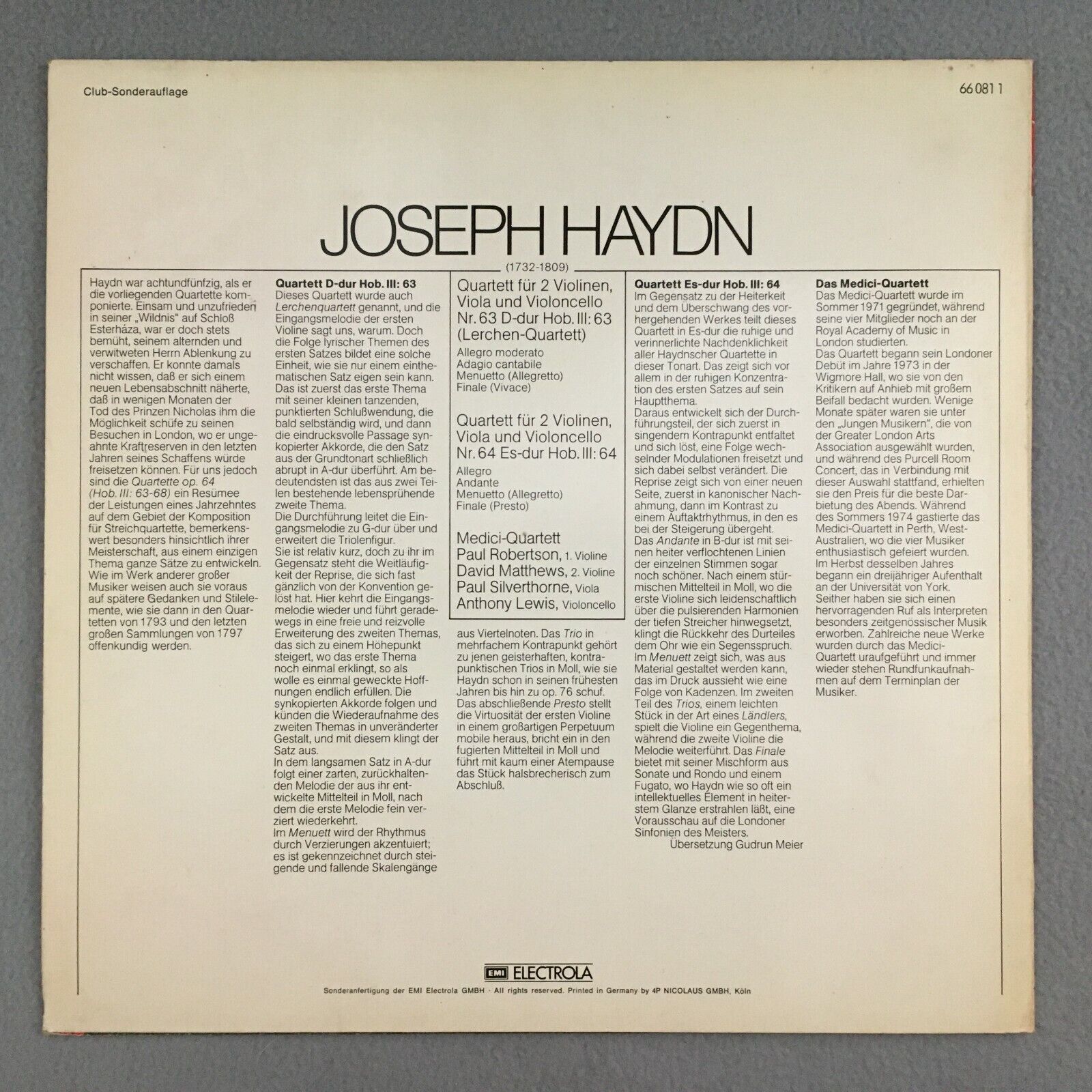 Y823 Haydn String Quartets Op.64 Medici Quartet EMI 66 081 1 Stereo