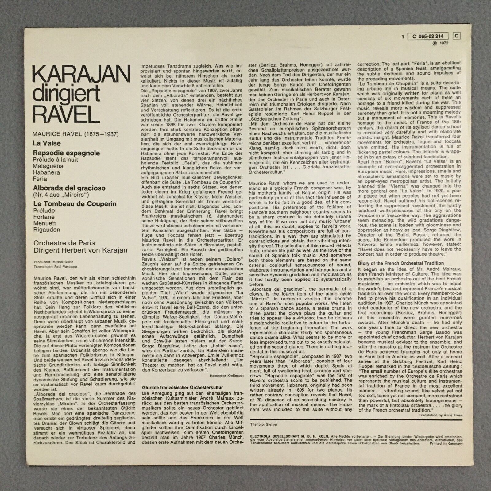 Y824 Ravel La Valse Rapsody Karajan EMI Electrola 1 C 065-02 214 Stereo