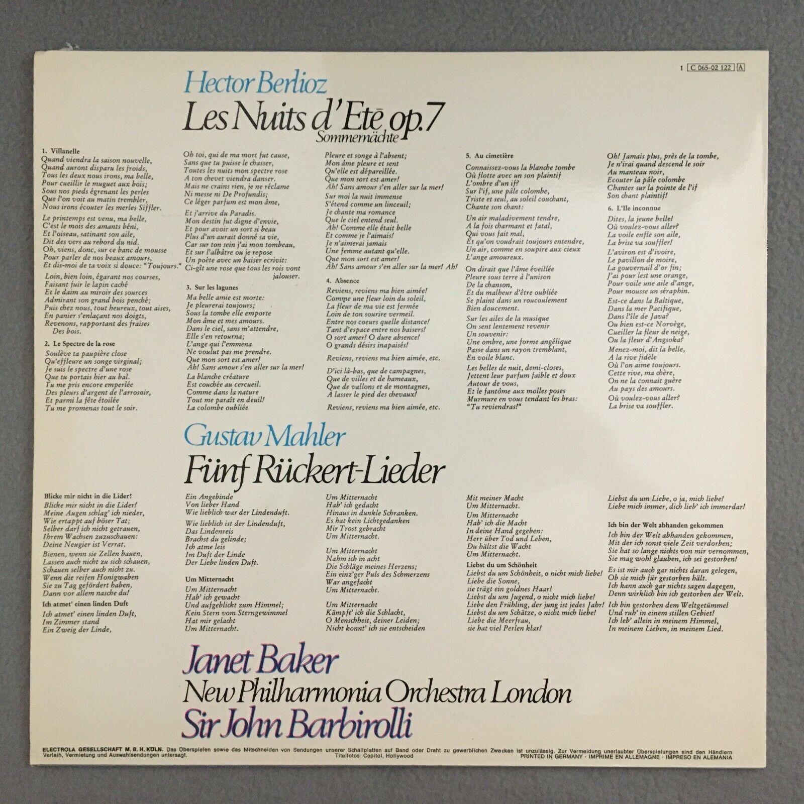 Y827 Berlioz Sommernights Mahler Songs Baker Barbirolli EMI 1 C 065.02 122 St