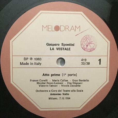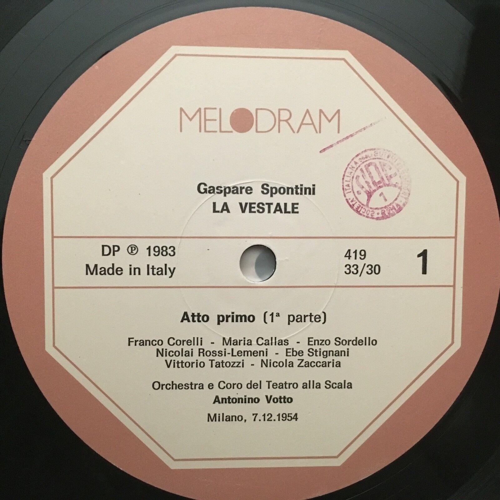 G558 Spontini La Vestale Callas Corelli Zaccaria Votto 3LP Melodram MEL 419
