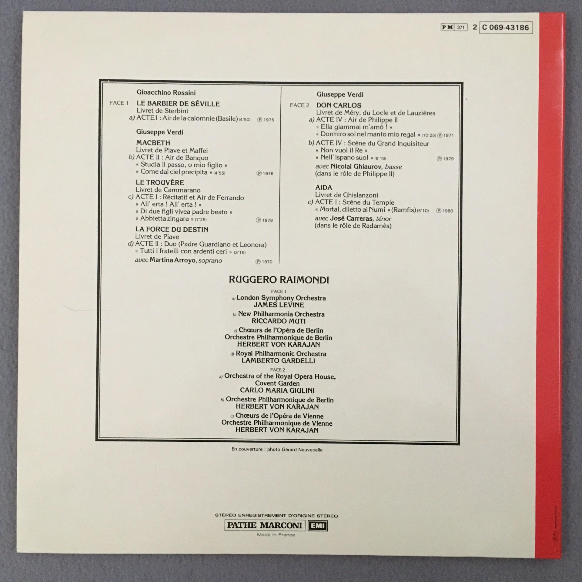 M132 Raimondi Songs & Arias Levine Muti Gardelli EMI 1 C 069-43 186 Stereo