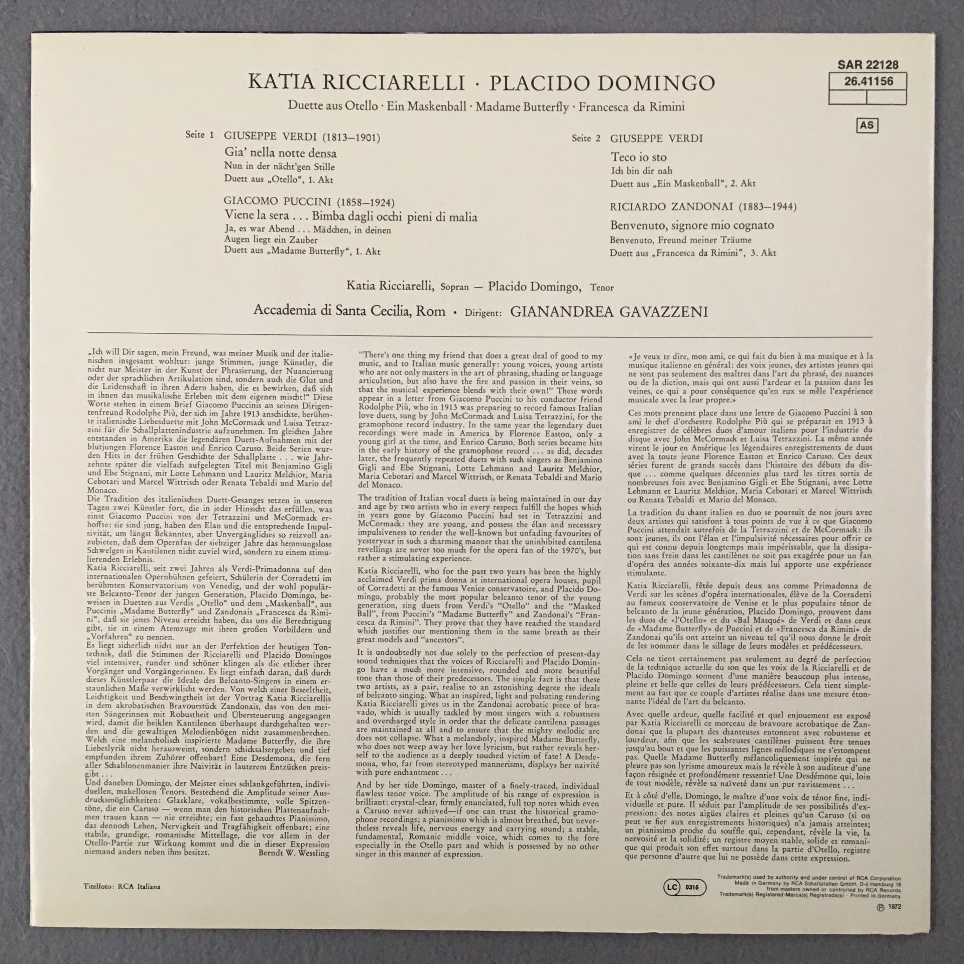 M142 Domingo Ricciarelli Duets Gavazzeni RCA SAR 22 128 Stereo