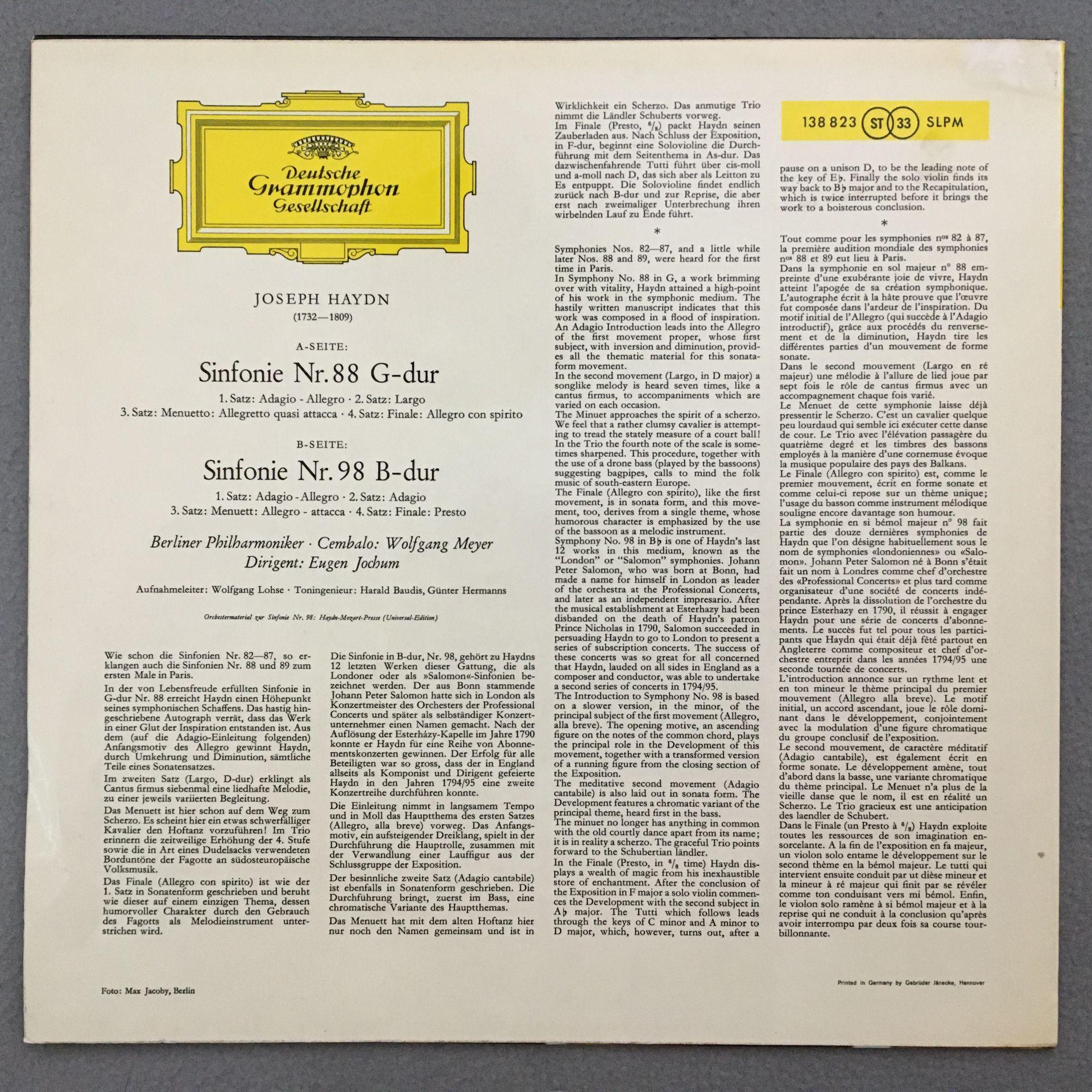 M153 Haydn Symphonies No.88 & No.98 Jochum BPO DGG 138 823 SLPM Stereo