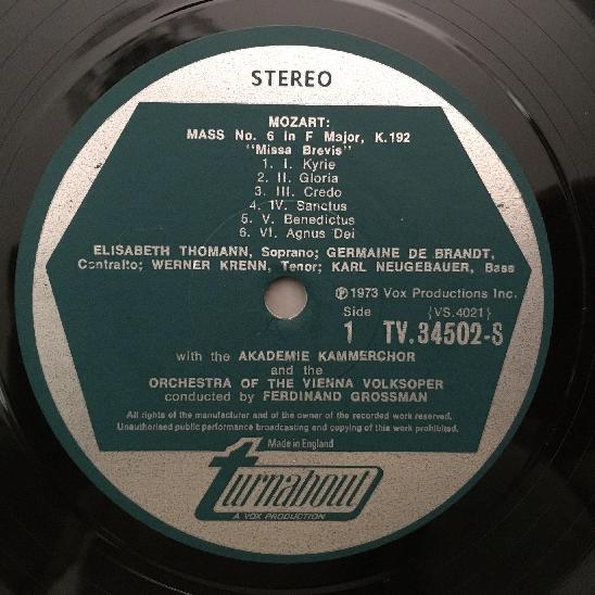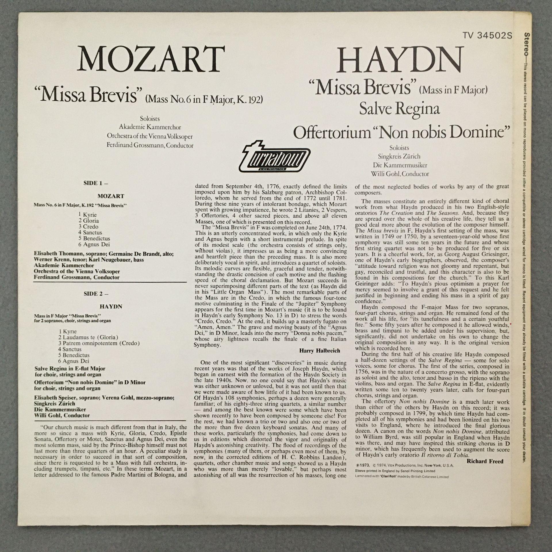 M165 Mozart Haydn Masses Grossmann Gohl Turnabout TV 34502S Stereo