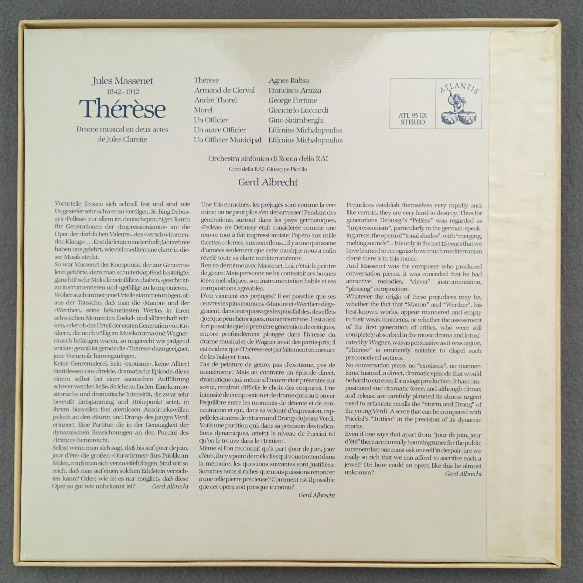 D215 Massenet Therese Baltsa Albrecht 2LP Atlantis ATL 95 101 Stereo Signed