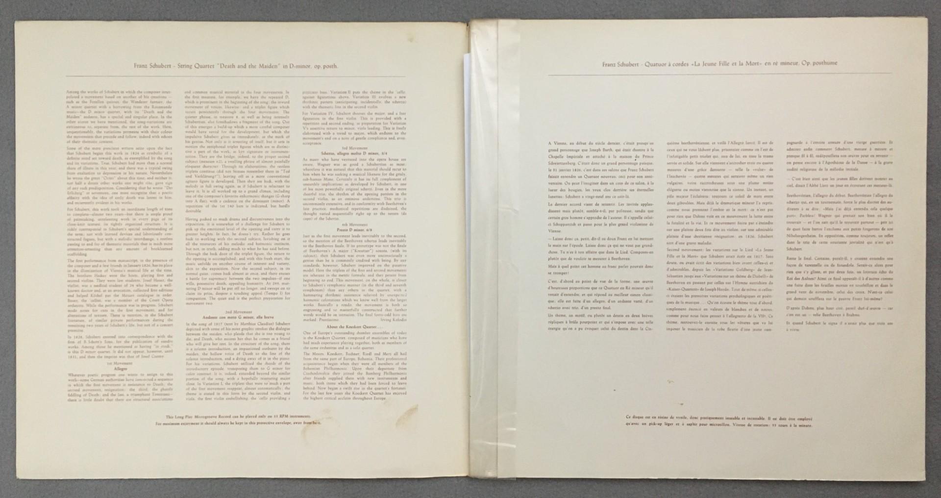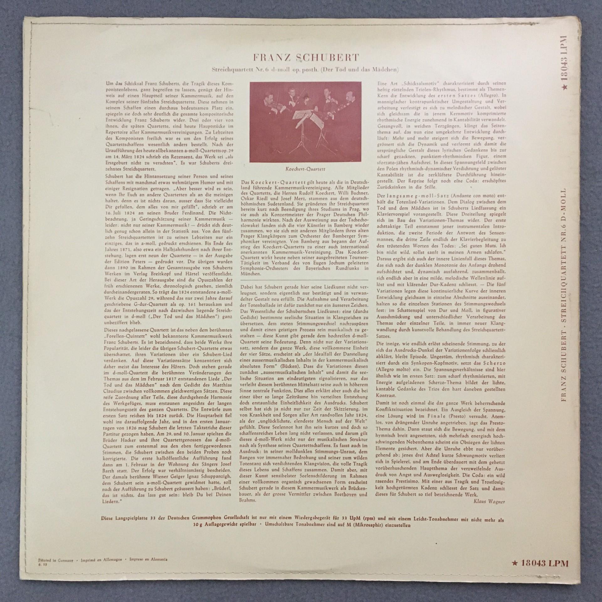 M171 Schubert String Quartet No.6 Koeckert Quartet DGG 18043 LPM Tulip