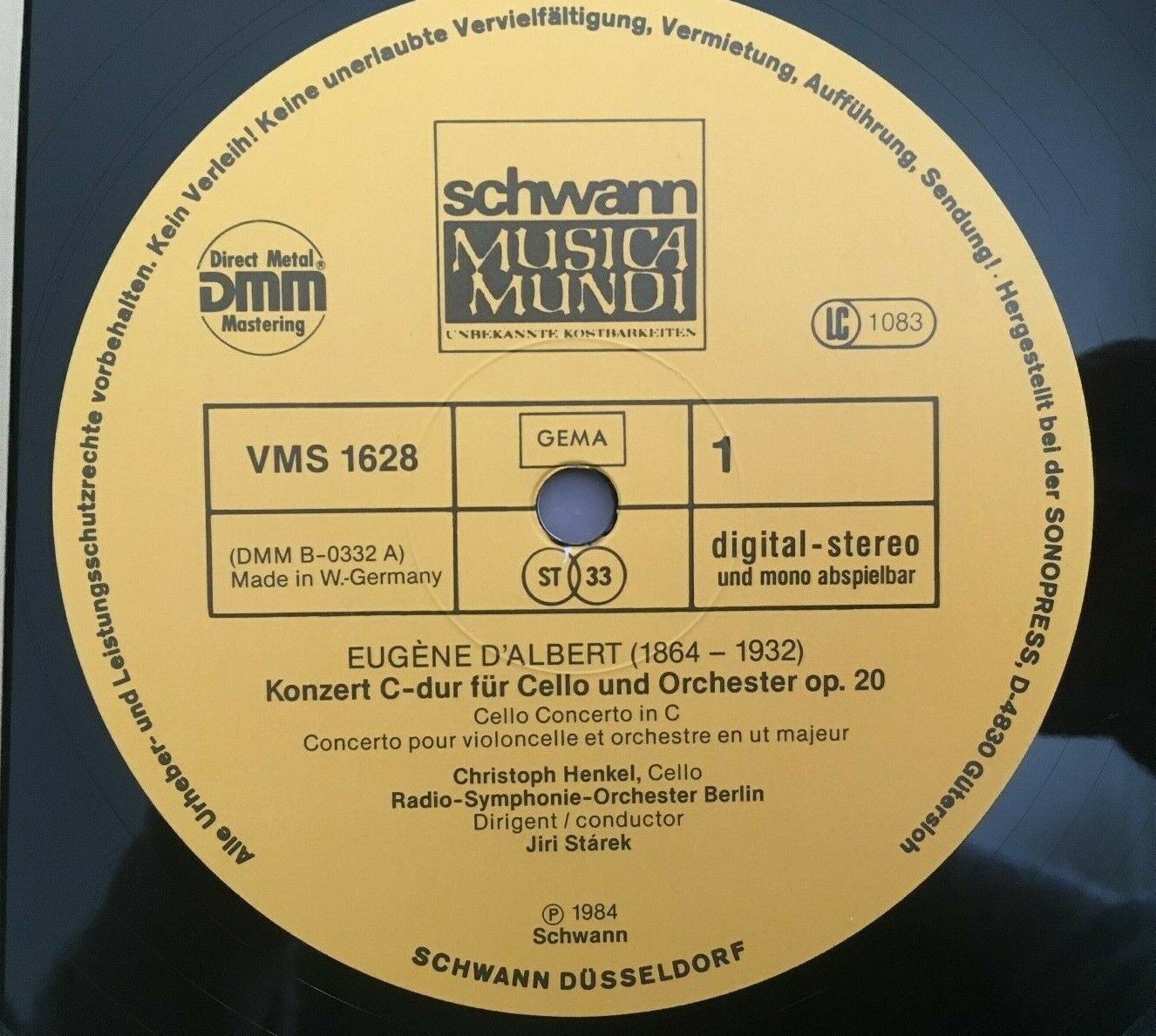 P243 d´Albert Volkmann Cello Concertos Baumann Schwann VMS 1628 Digital Stereo