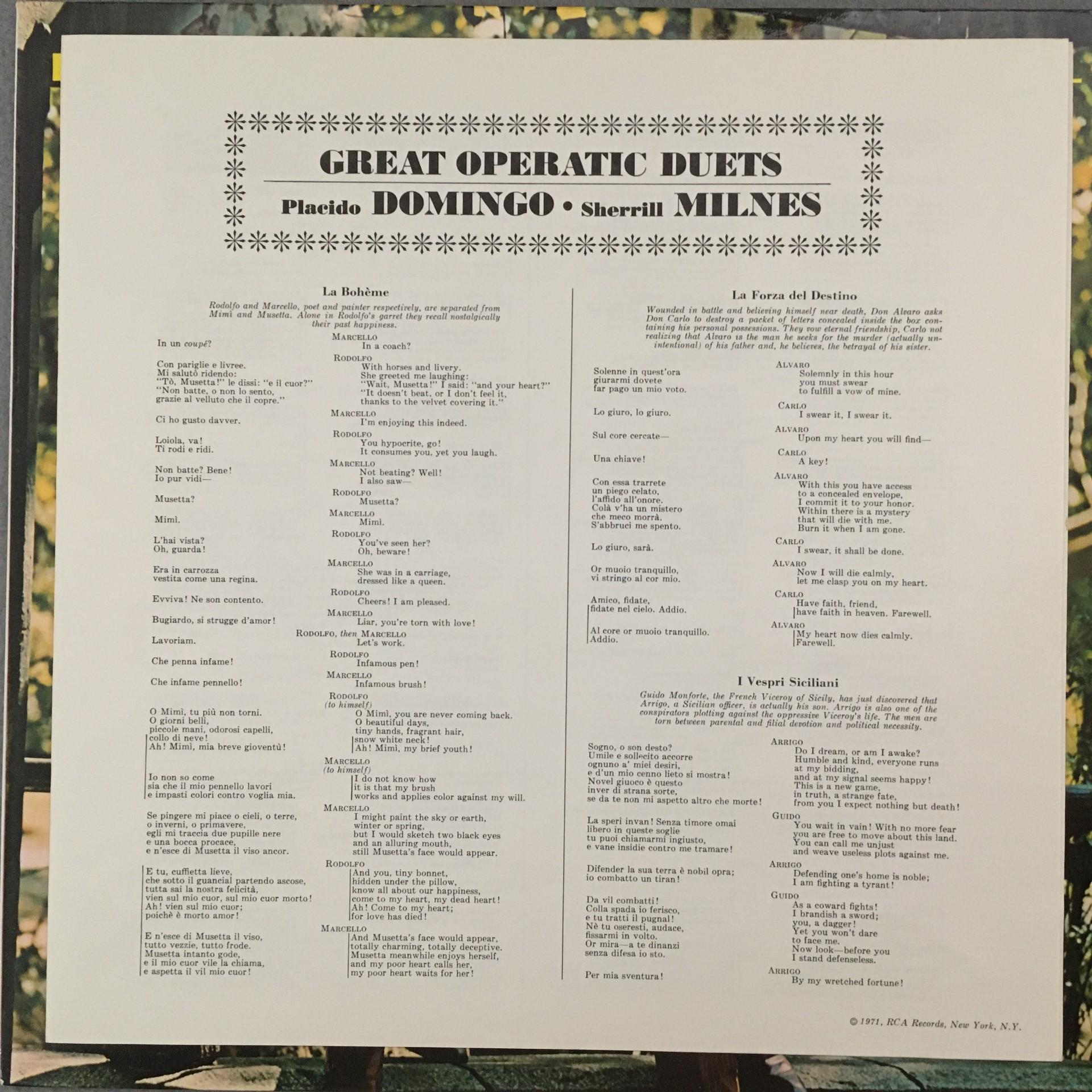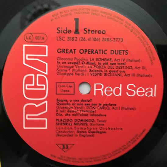 M189 Domingo Milnes Great Operatic Duets RCA LSC-3182 Stereo