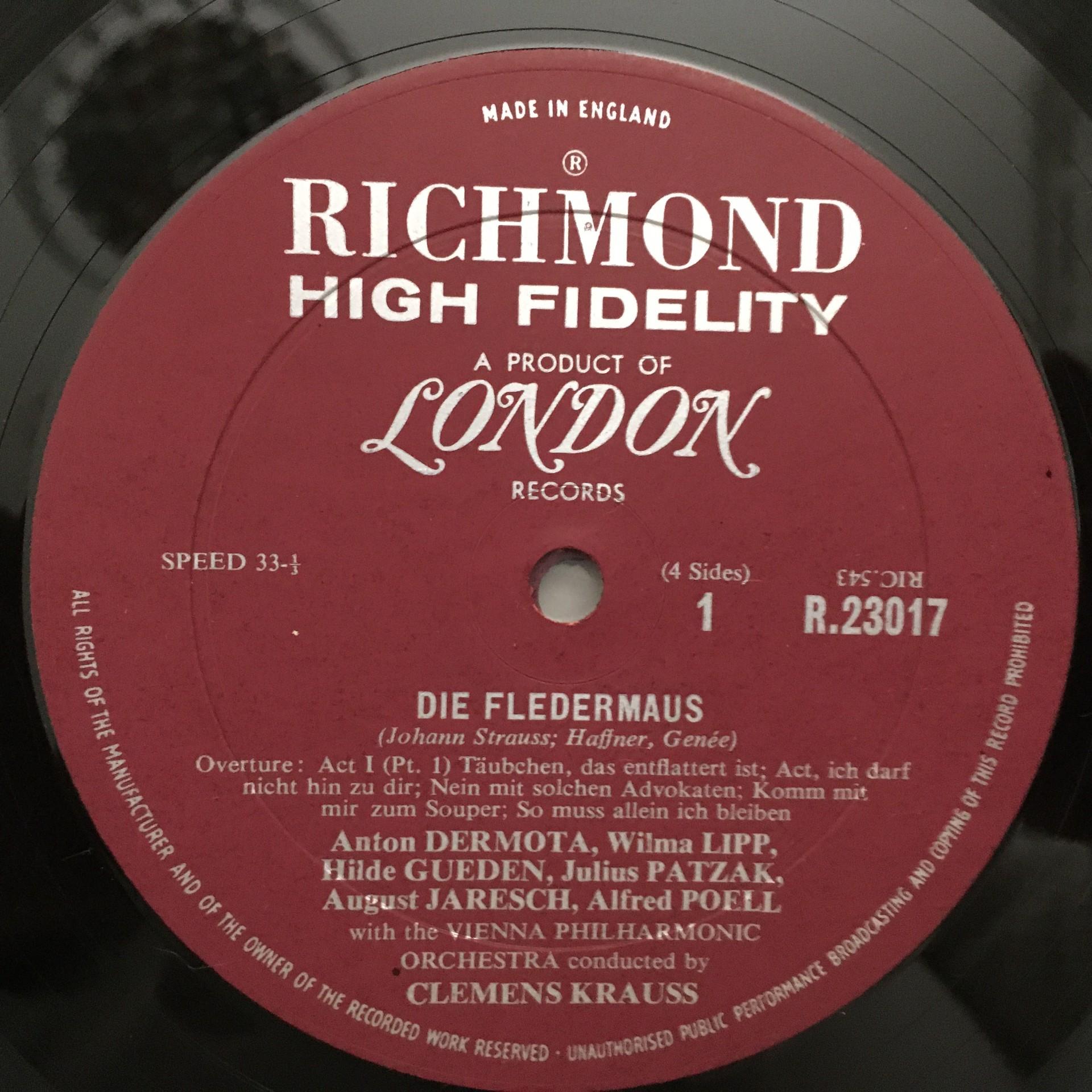 D240 J. Strauss The Bat Güden Lipp Krauss VPO 2LP Richmond RS 62006 Signed