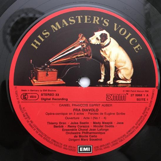 D252 Auber Fra Diavolo Gedda Mesple Soustrot 2LP EMI 27 0068 3 Digital Stereo
