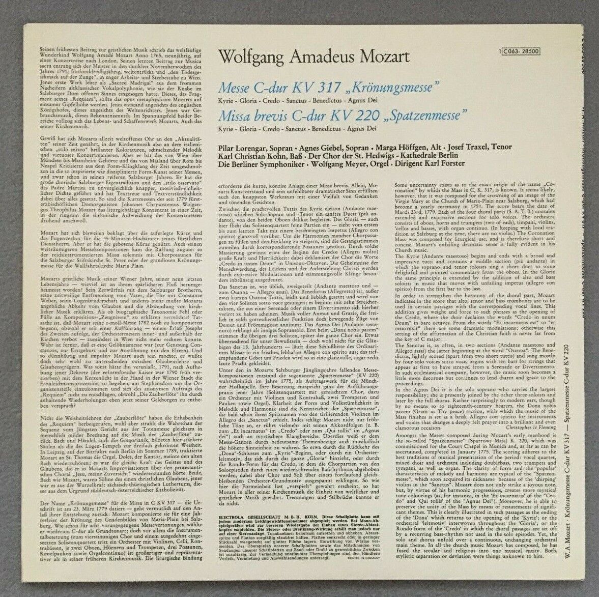 P246 Mozart Coronation Mass Meyer Forster EMI 1C 063-28 500 Stereo