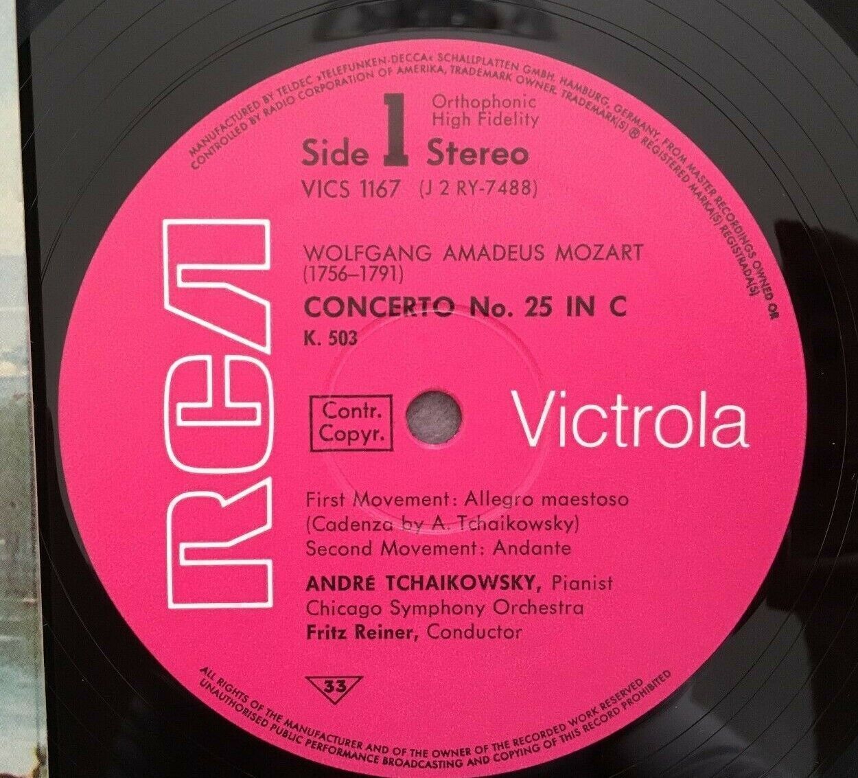 P150 Mozart Piano Concerto No.25 Tchaikowsky Reiner RCA Victrola VICS 1167 Stere