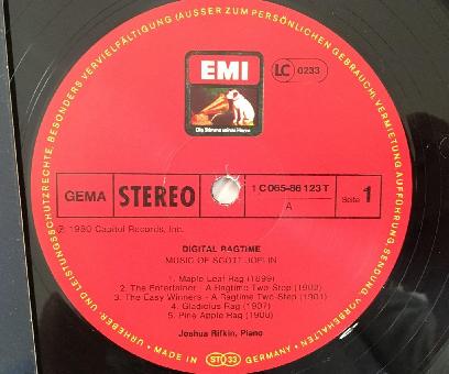 P360 Digital Ragtime Music of S. Joplin Rifkin Piano EMI 1C 065-86 123 T Digital
