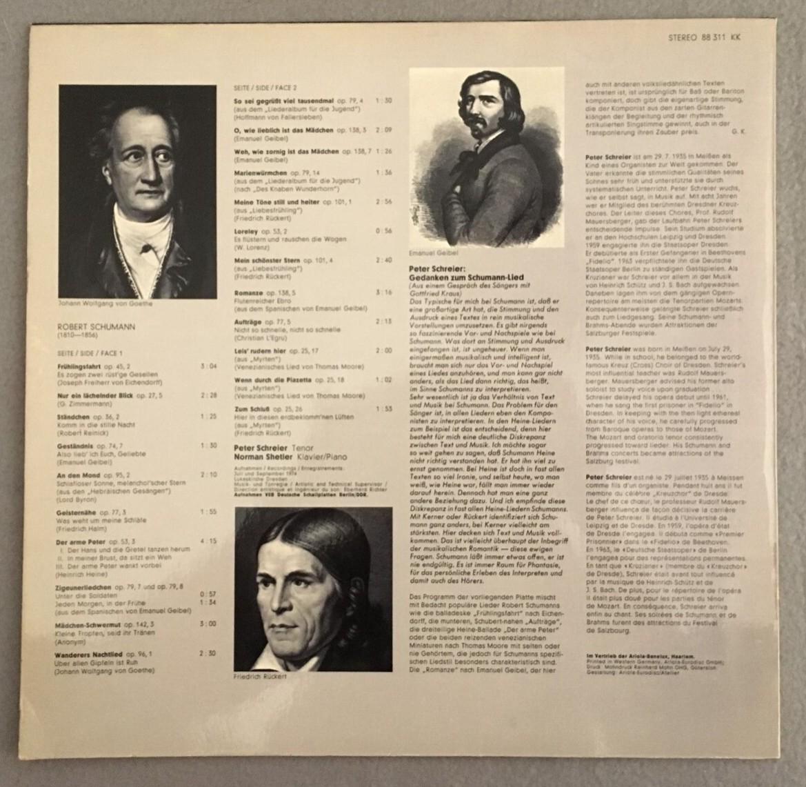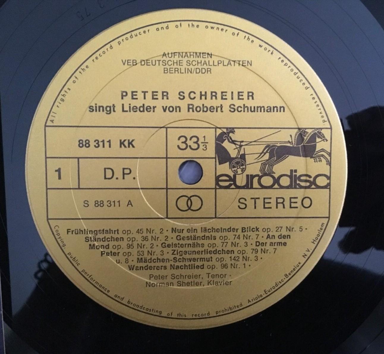 P363 Schreier Schumann Romantic Songs Shetler Piano Eurodisc 88 311 KK Stereo