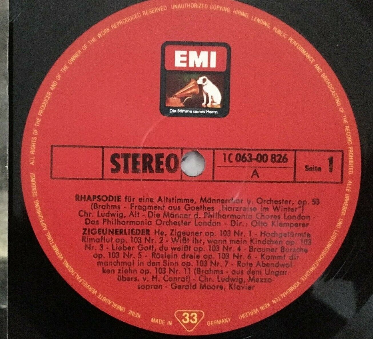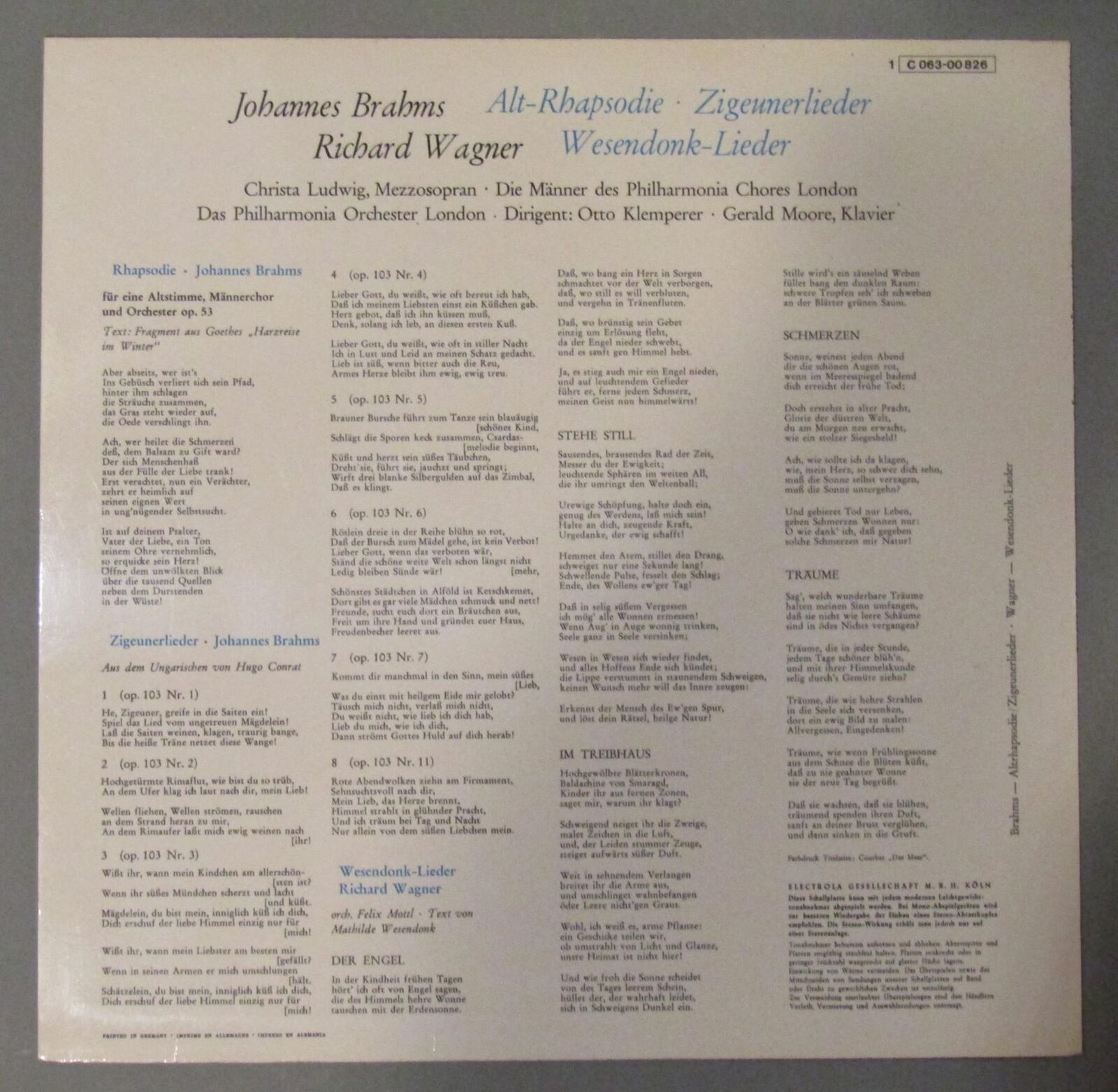 P210 Brahms Wagner Songs Ludwig Moore Klemperer LPO EMI 1 C 063-00 826 Stereo
