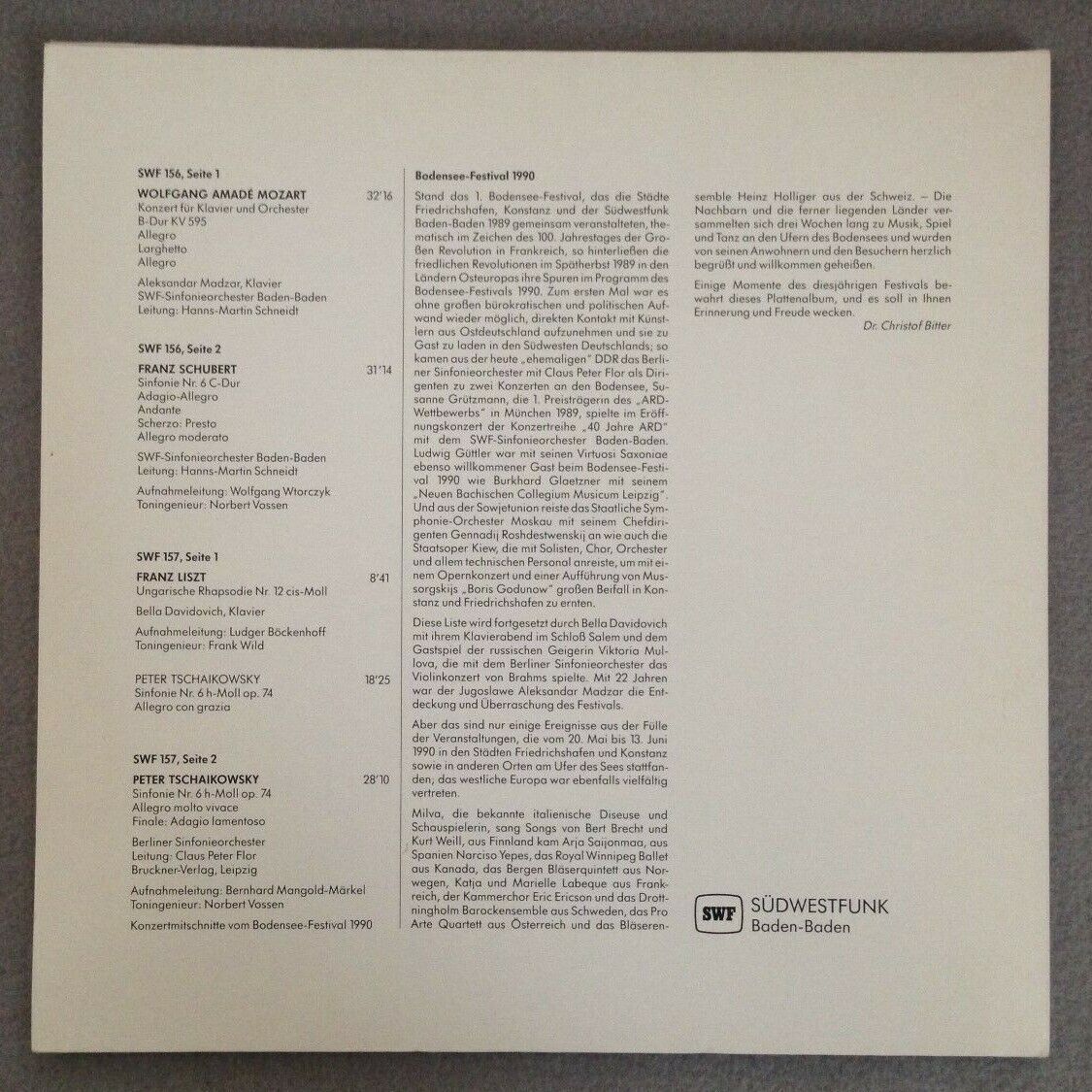 P301 Bodensee-Festival 1990 Flor 2LP Südwestfunk SWF 156/157 Stereo