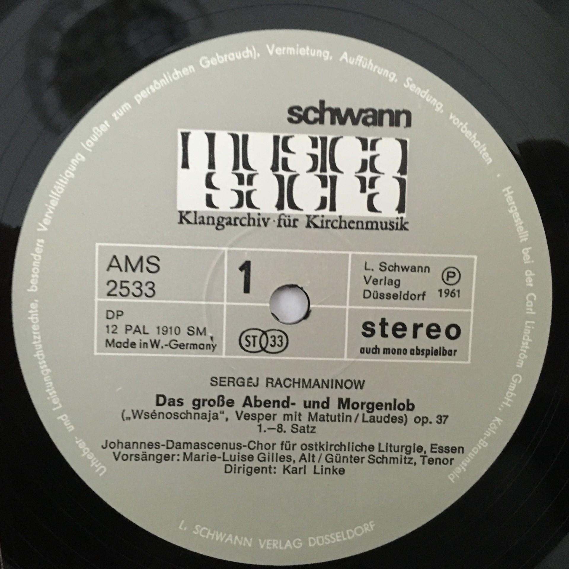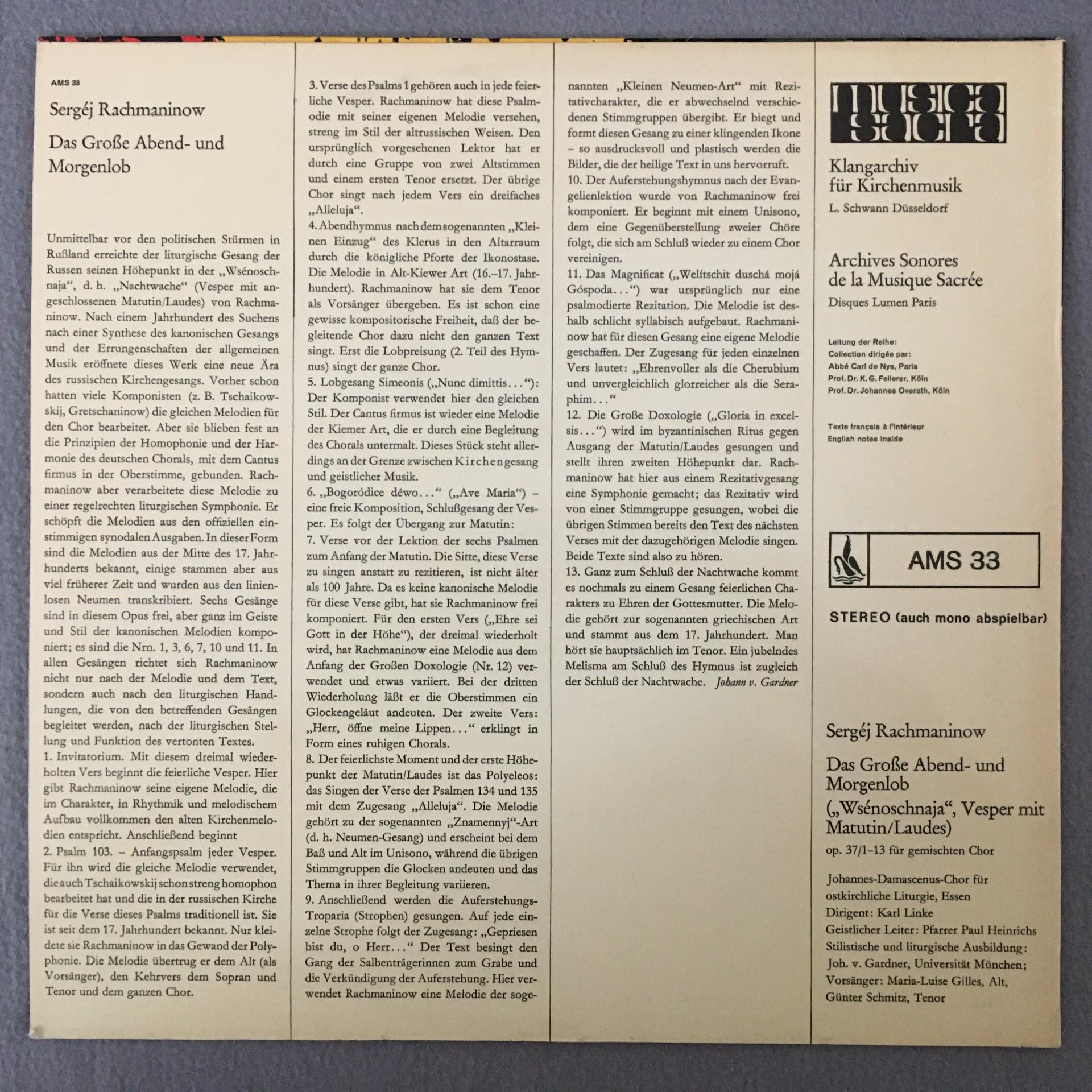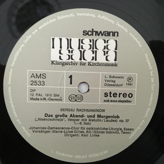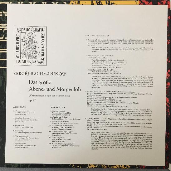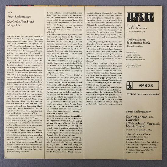 M199 Rachmaninov Großes Abend & Morgenlob Linke Musica Sacra AMS 33 Stereo