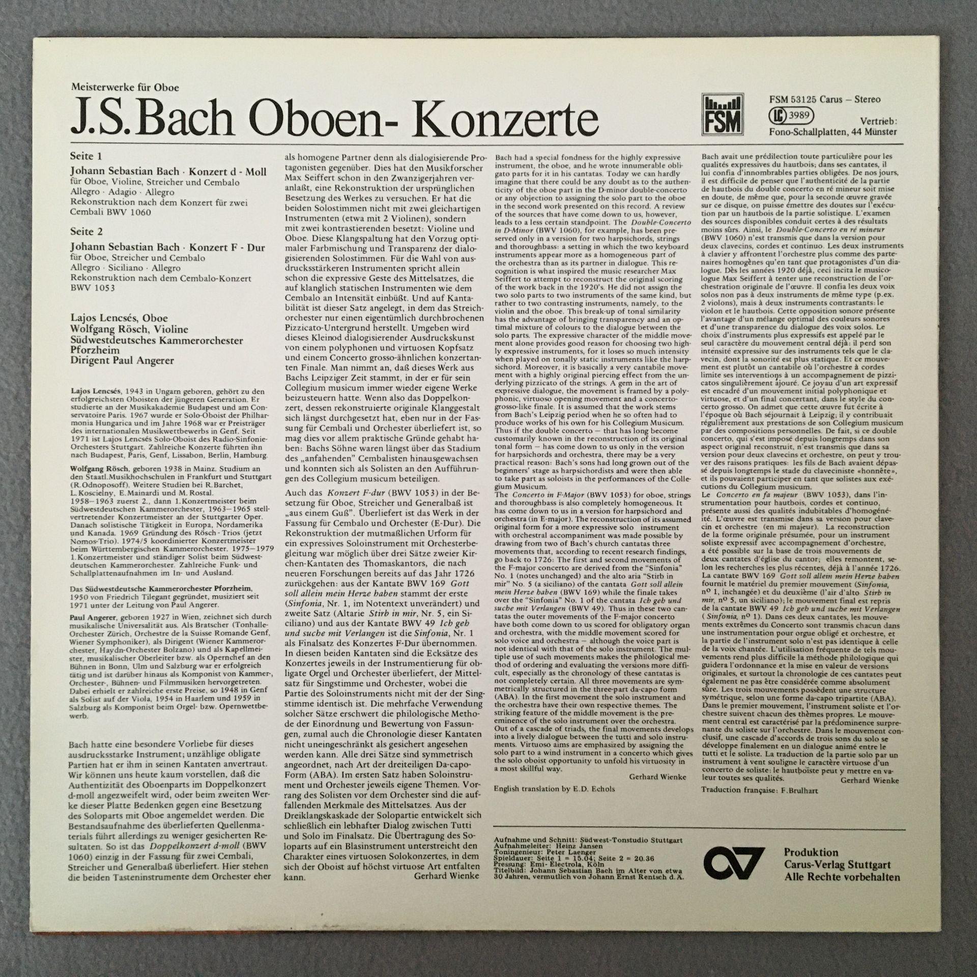 M200 Bach Oboe Concertos Lencses Angerer Carus FSM 53 125 Stereo