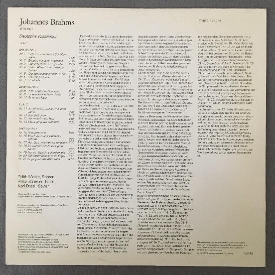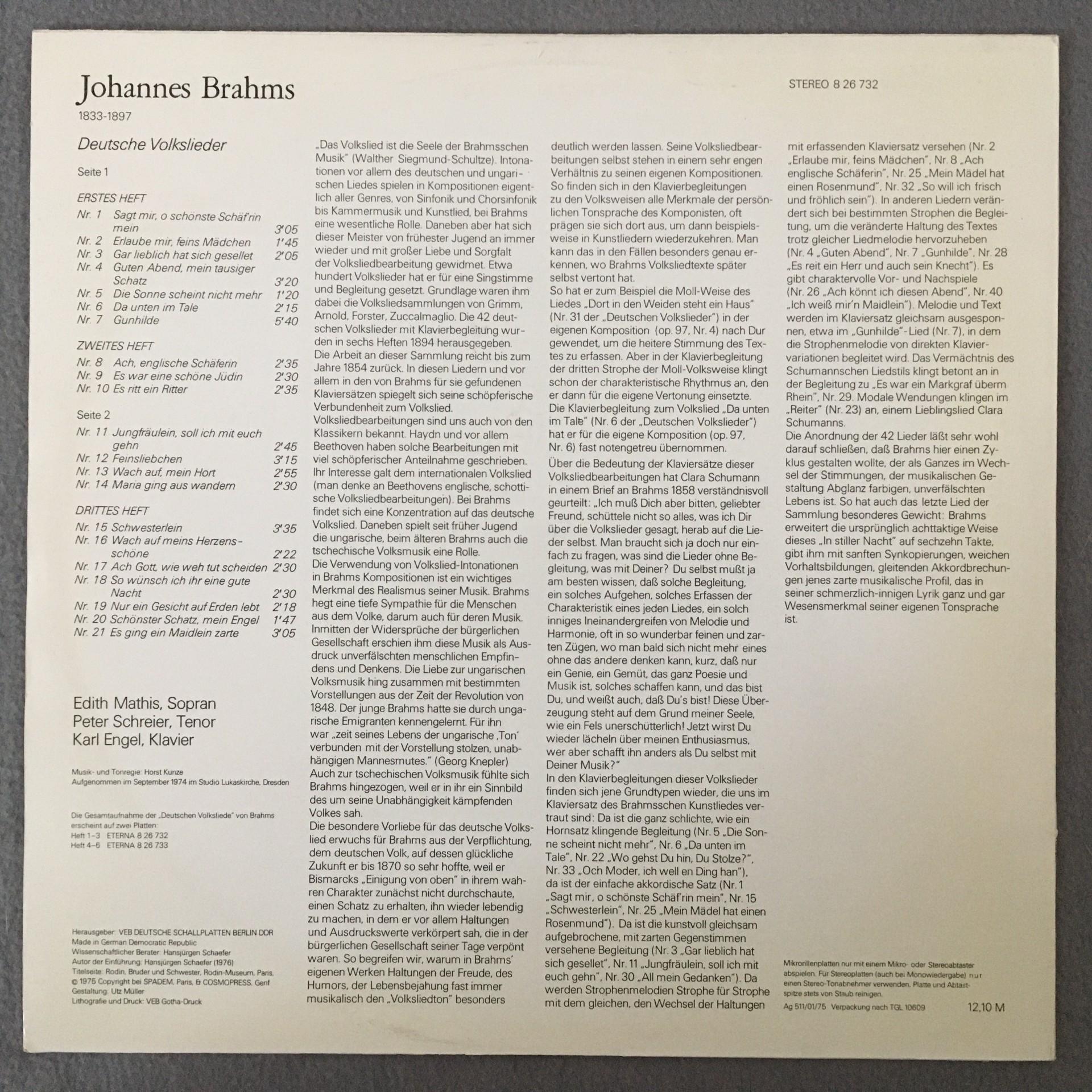 M202 Brahms German Folk Songs Mathis Schreier Engel Eterna 8 26 732 Stereo