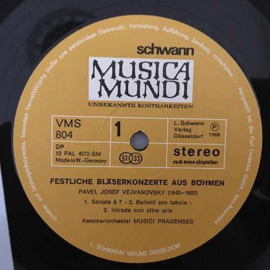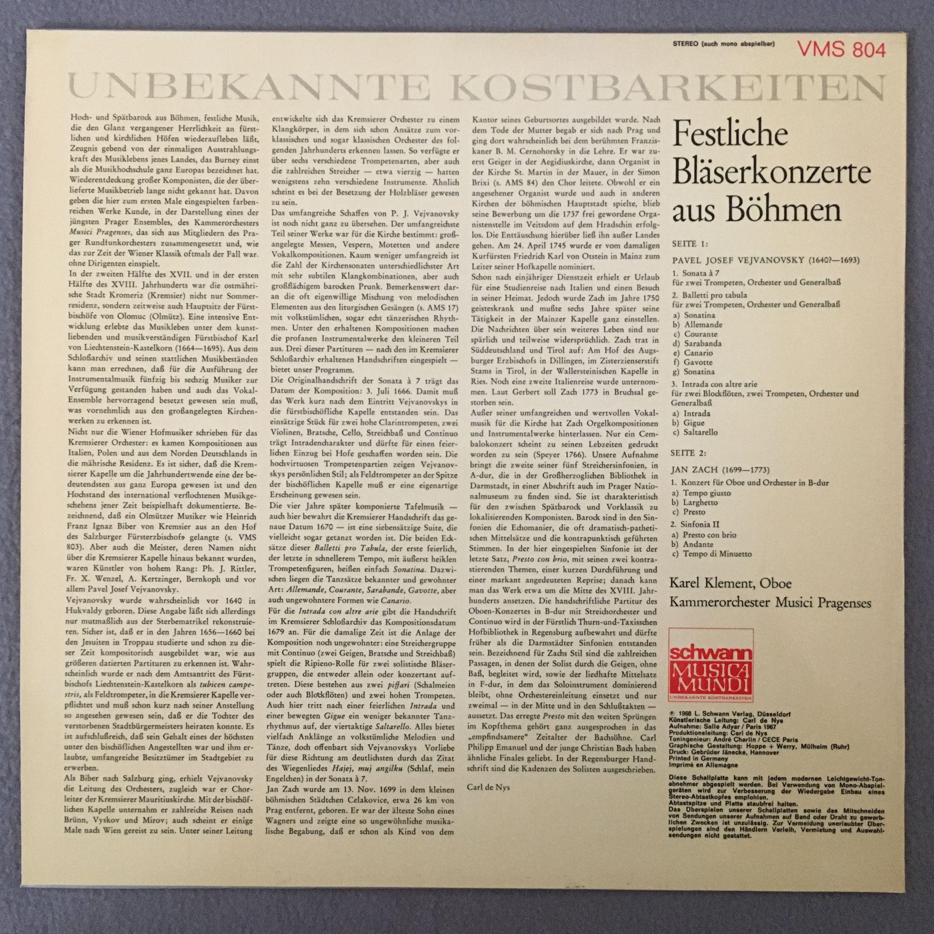 M204 Vejvanovsky Zach Festive Wind Concertos Klement Schwann VMS 804 Stereo