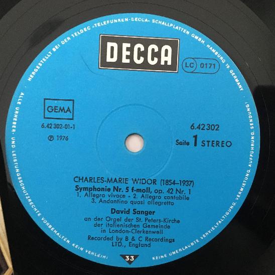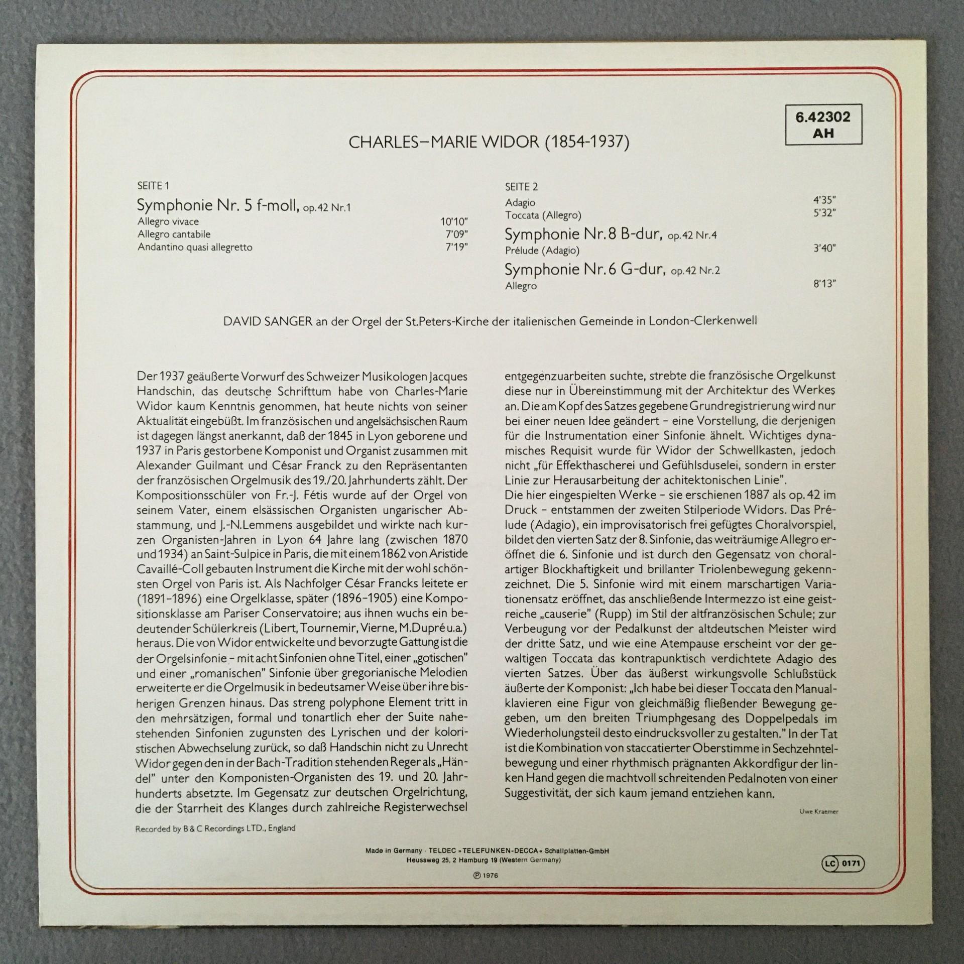 M206 Widor Symphonies No.5 & 8 & 6 Sanger Organ DECCA 6.42302 AH Stereo
