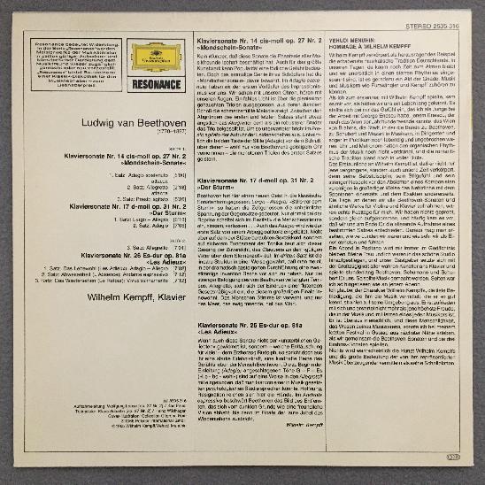 M218 Beethoven Piano Sonatas Kempff DGG 2535 316 Stereo