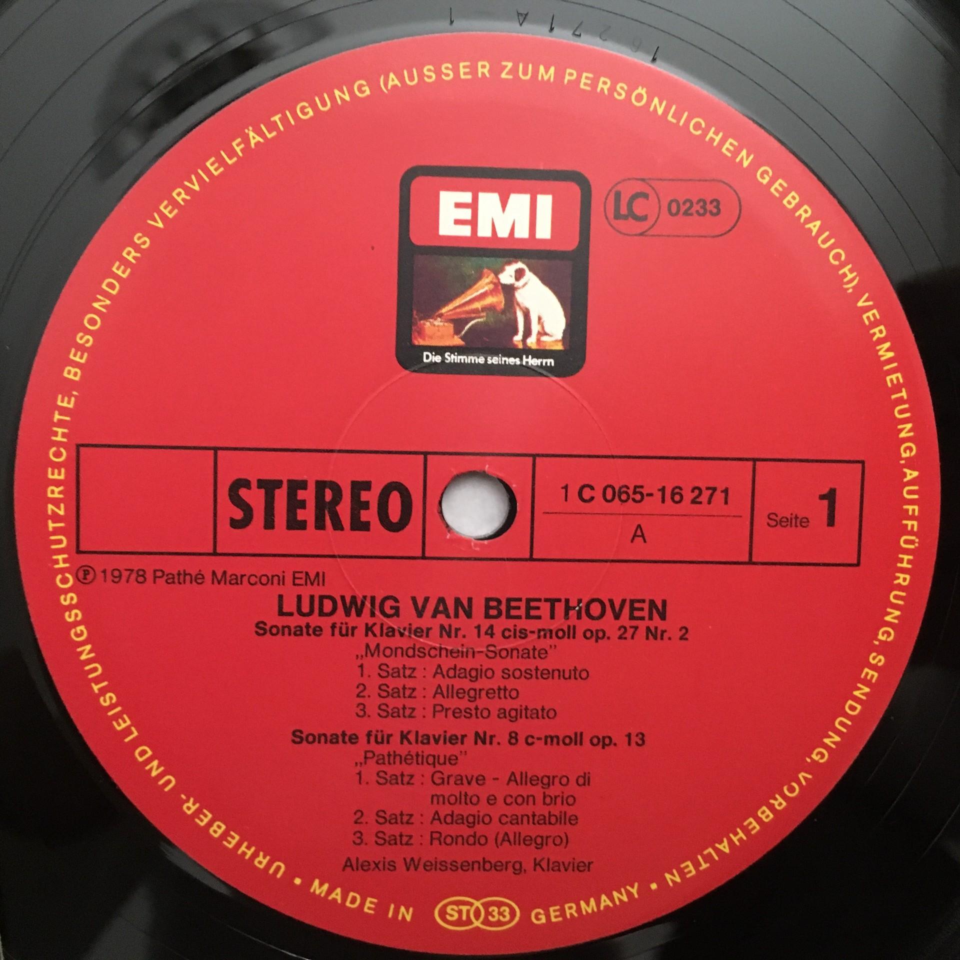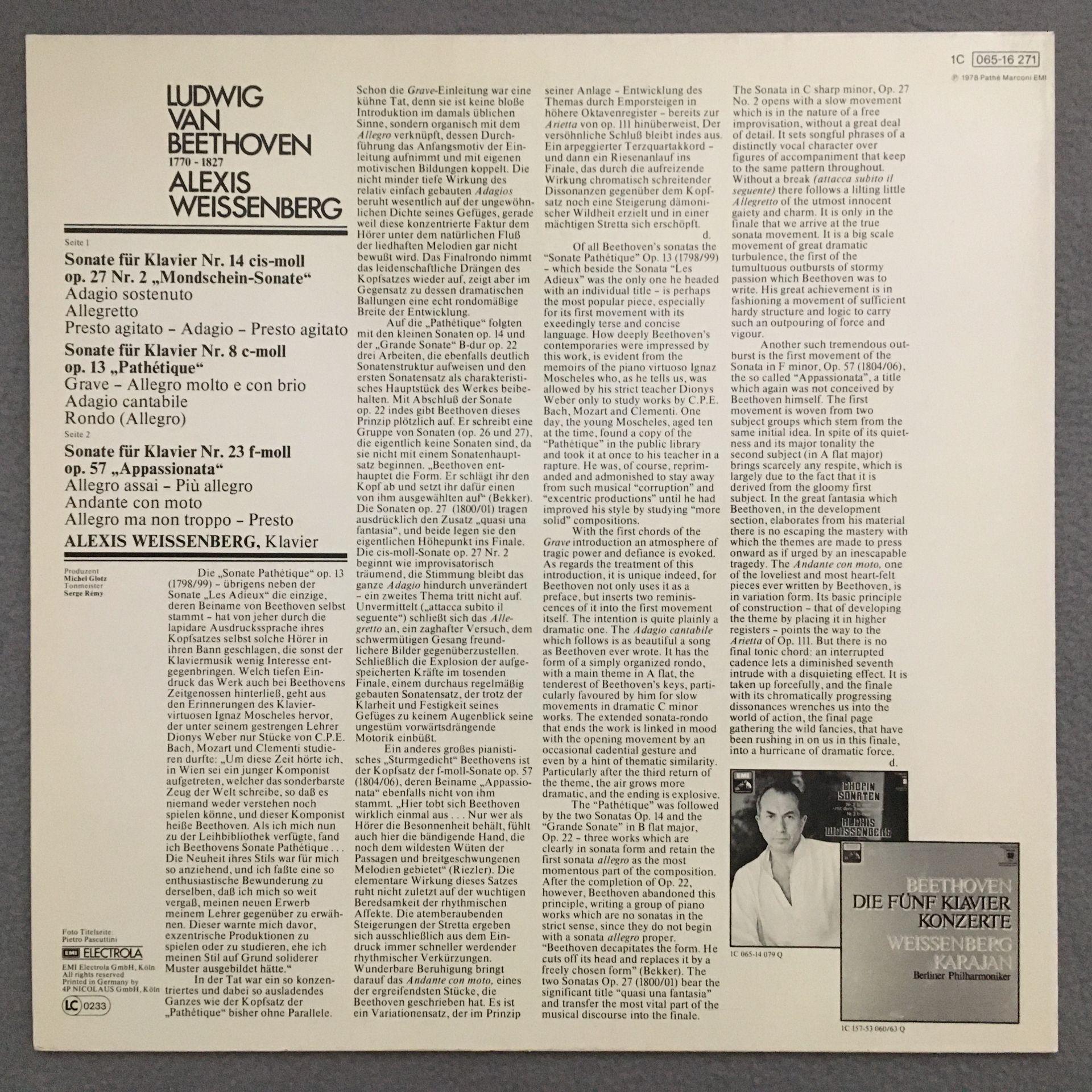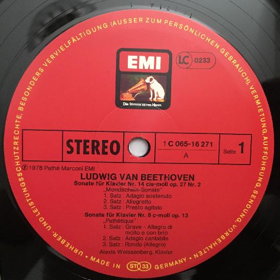 M225 Beethoven Sonatas Weissenberg Piano EMI 1C 065-16 271 Stereo