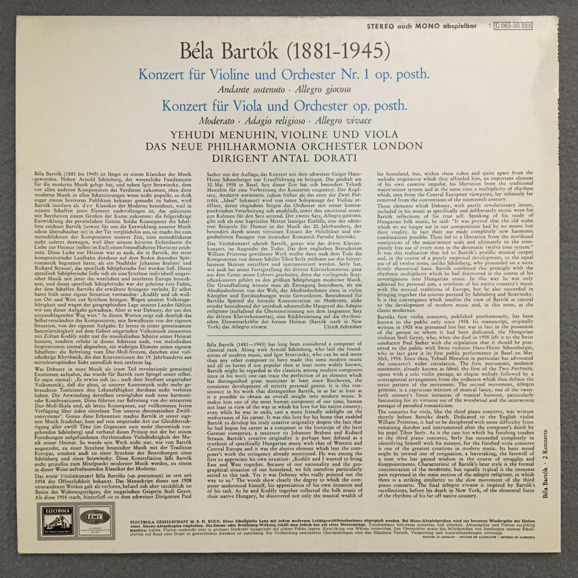 M237 Bartok Violin Concerto No.1 Menuhin Dorati EMI 1 C 063-00 333 Stereo