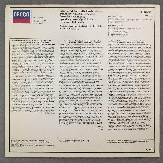 M257 Mendelssohn Symphonies No.3 & No.4 Marriner DECCA 6.42835 AW Stereo