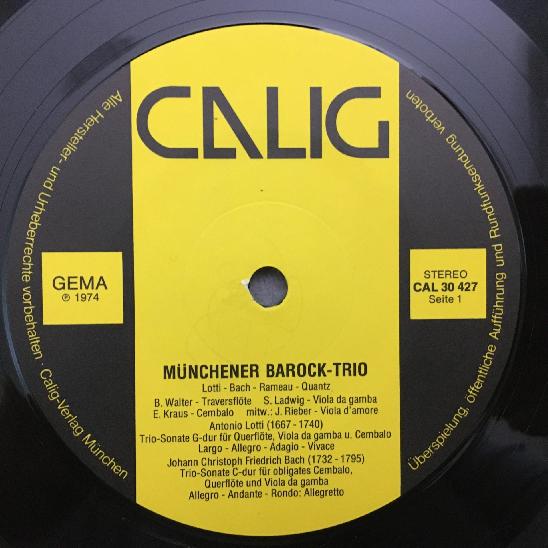 M258 Munich Baroque Trio Lotti Bach Rameau Quantz Calig CAL 30 427 Stereo
