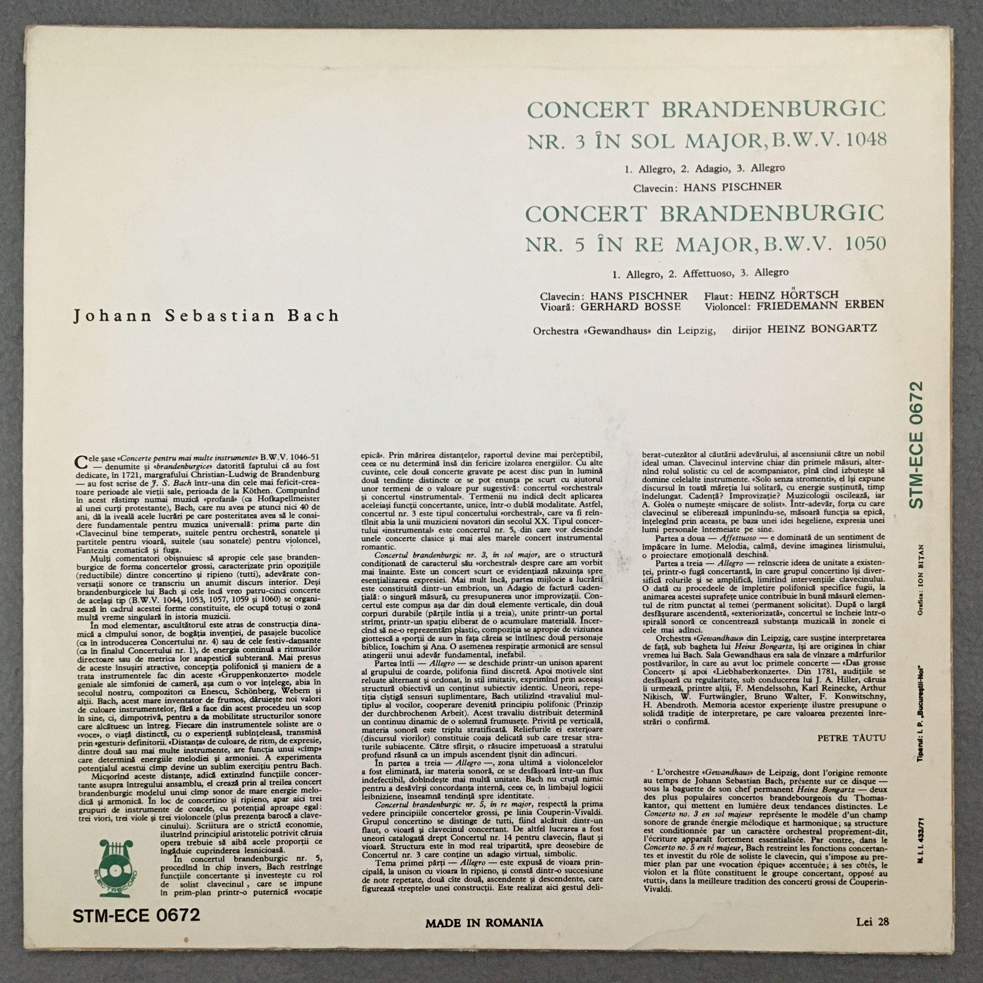 M265 Bach Brandenburg Concertos Bongartz Electrecord STM-ECE 0672 Stereo