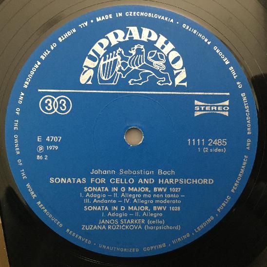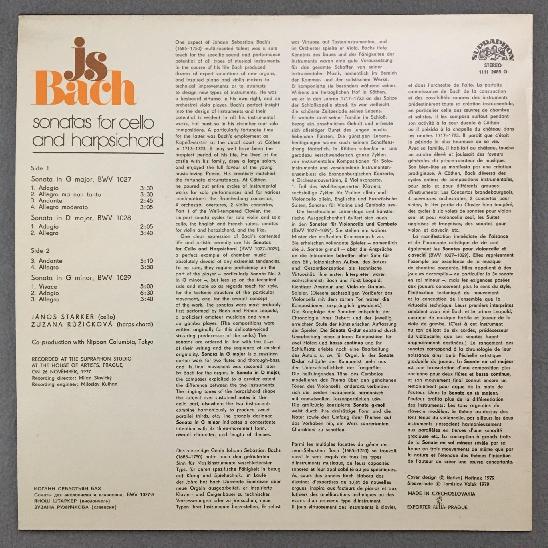 M267 Bach Cello & Harpsichord Sonatas Starker Ruzickova Supraphon 1111 2485 G St