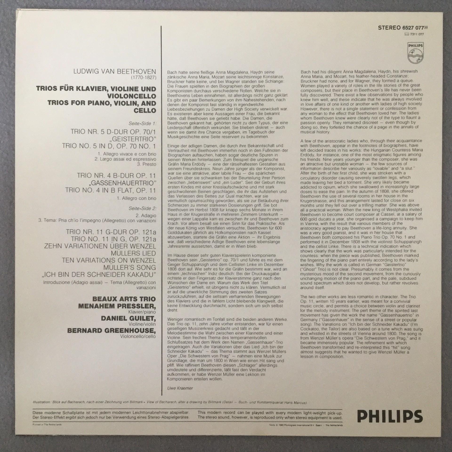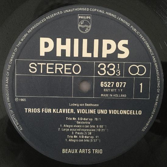 M275 Beethoven Trios Beaux Arts Trio Philips 6527 077 Stereo