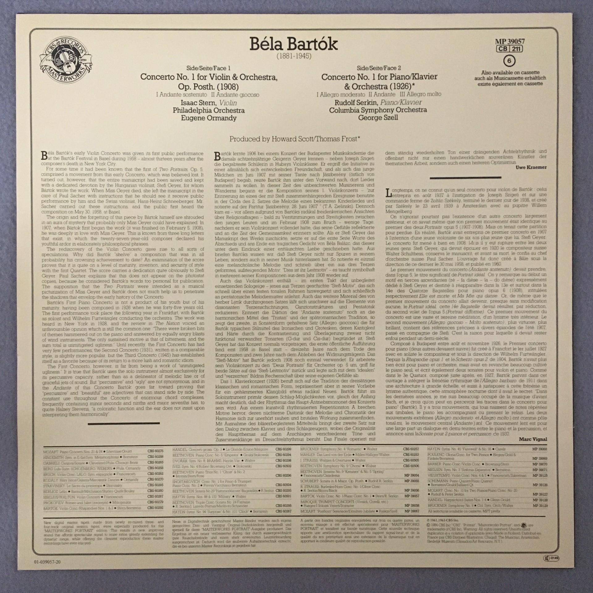 M278 Bartok Concertos Stern Serkin Ormandy Szell CBS MP 39057 Stereo
